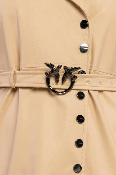 Beżowa sukienka mini zaprojektowana przez włoski dom mody PINKO wykonana ze skóry ekologicznej. Zapinana na guziki, głęboki dekolt ze skrzyżowanymi klapami oraz dołączony pasek z charakterystycznym logo Love Birds. Całość utrzymana w prostym kroju. Sukienka doskonale sprawdzi się jako stylizacja na wyjątkowe okazje oraz wypady na miasto.