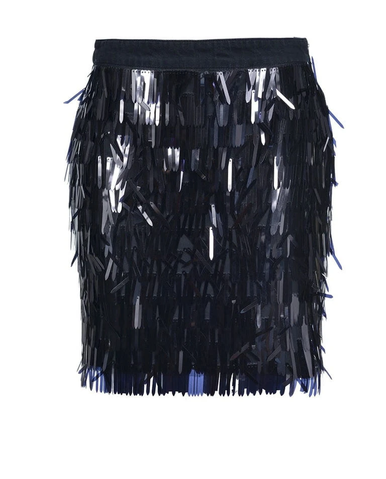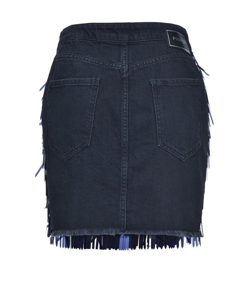 Czarna, jeansowa spódnica mini PINKO z cekinami