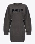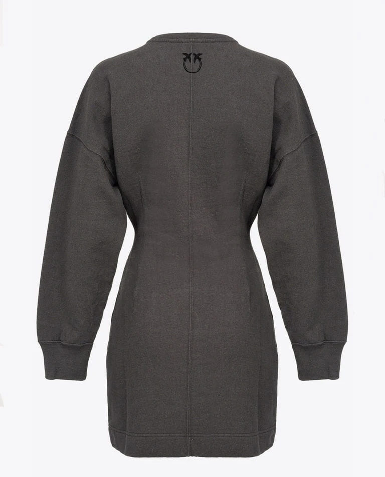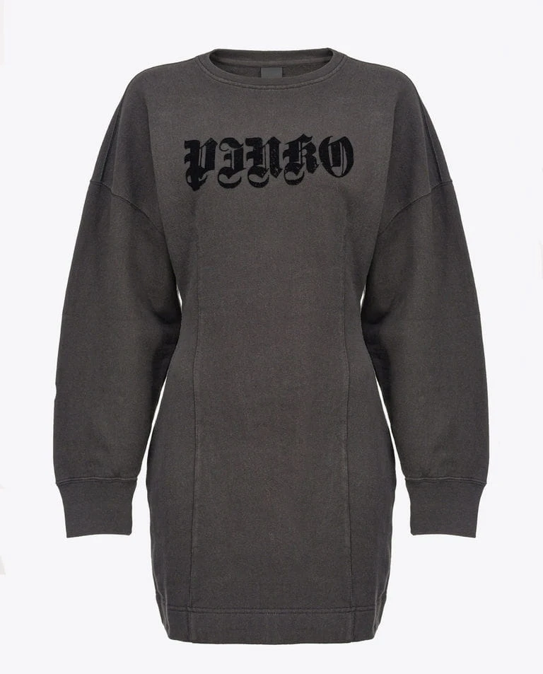 Sukienka mini włoskiego domu mody PINKO w kolorze czarnym. Wykonana została z wysokogatunkowej bawełny, a całość ozdobiona welurowym logiem marki. Sukienka posiada okrągły dekolt, długie bufiaste rękawy oraz wcięcie w tali. Dodatkowo z tyłu sukienki umieszczone zostało charakterystyczne logo Love Birds.