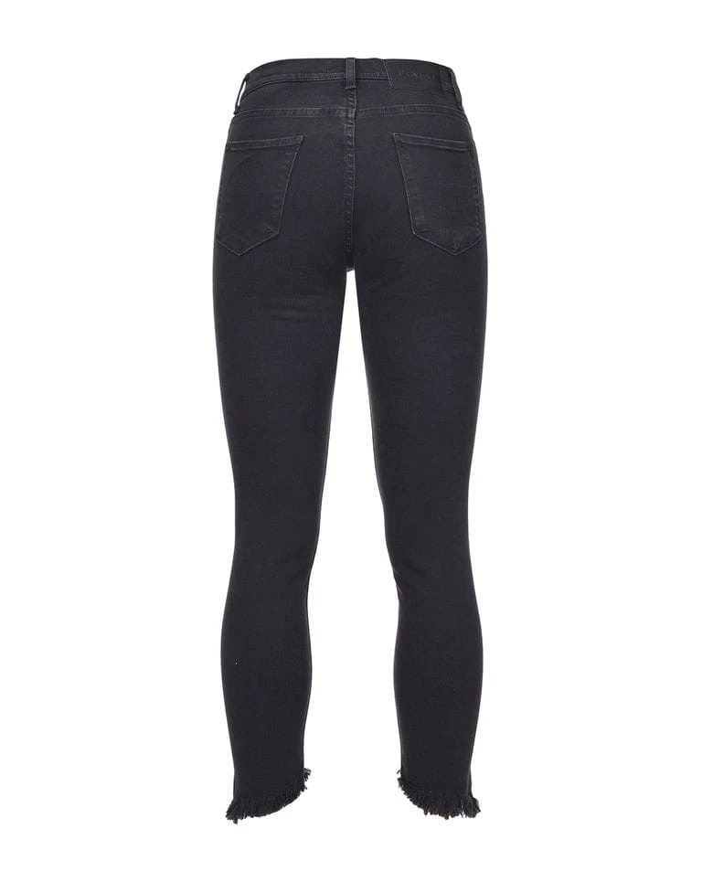 Czarne jeansy marki Pinko, model Sabrina, to must-have dla miłośniczek klasyki i komfortu. Mają dopasowany krój skinny, który podkreśla sylwetkę, oraz średni stan z praktycznymi szlufkami na pasek. Zapinane na zamek i guzik, wykonane zostały z elastycznego czarnego denimu, zapewniając wygodę i perfekcyjne dopasowanie.