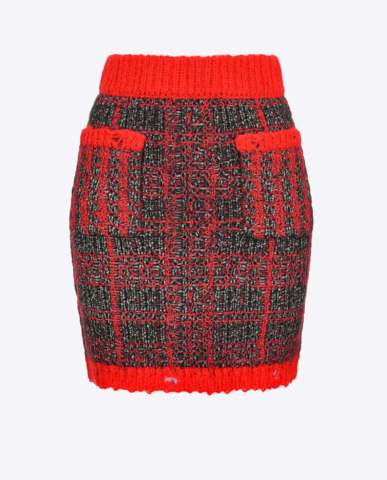 Czerwona spódnica mini PINKO Bertarosa w kratę