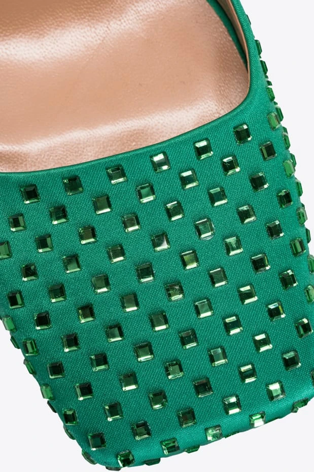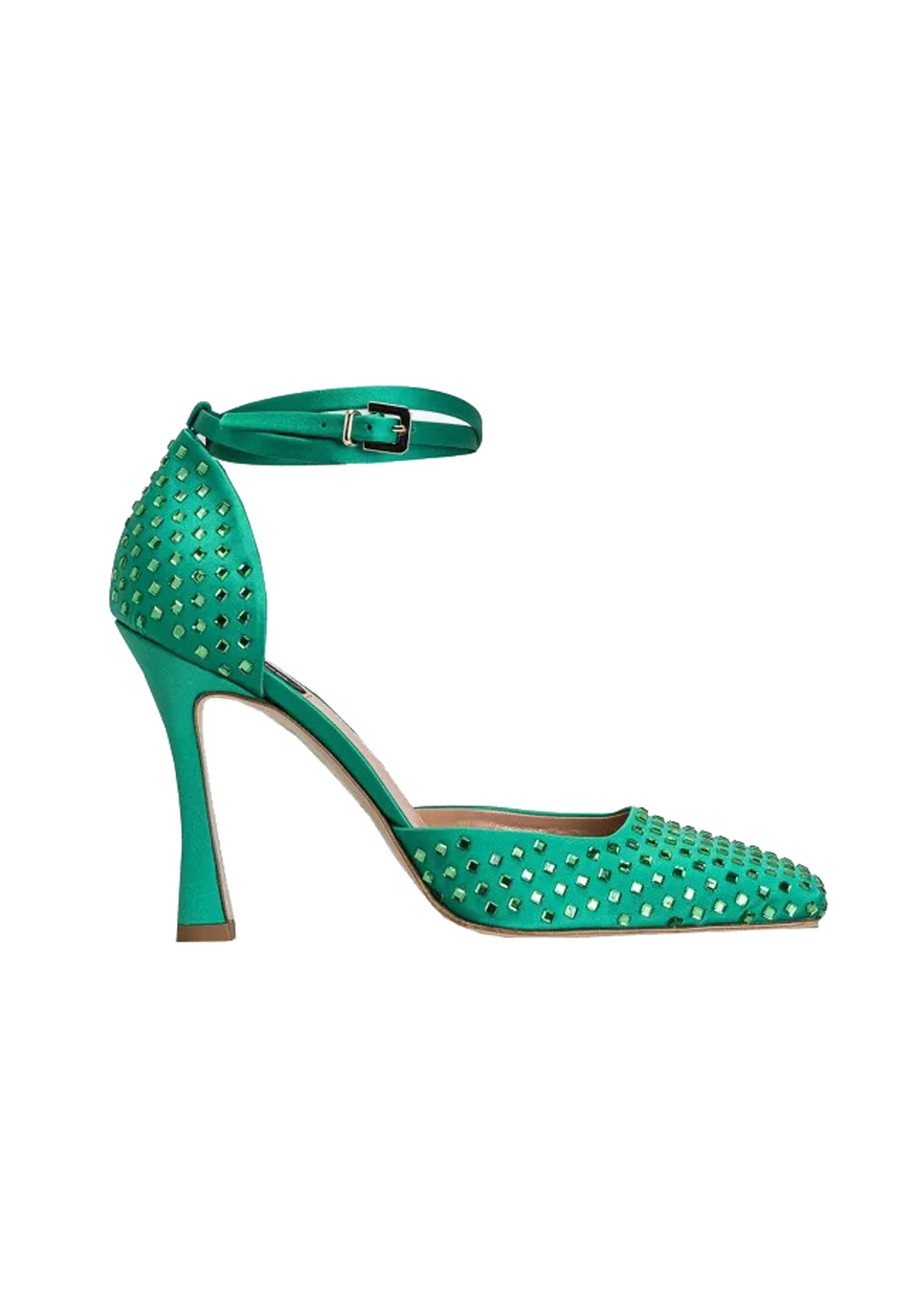 - Satynowe czółenka z cyrkonową aplikacją w tej samej tonacji