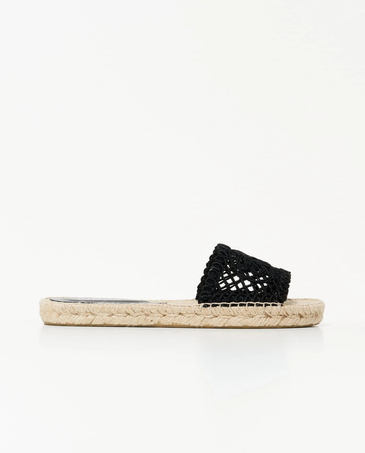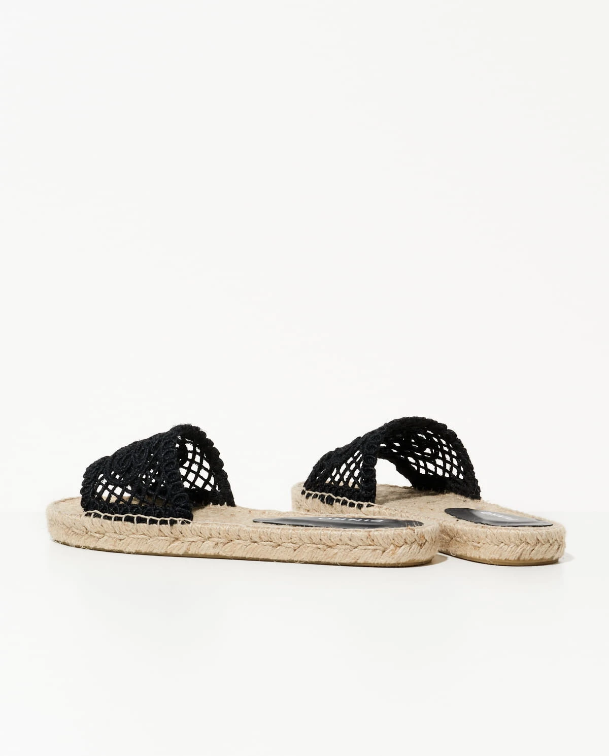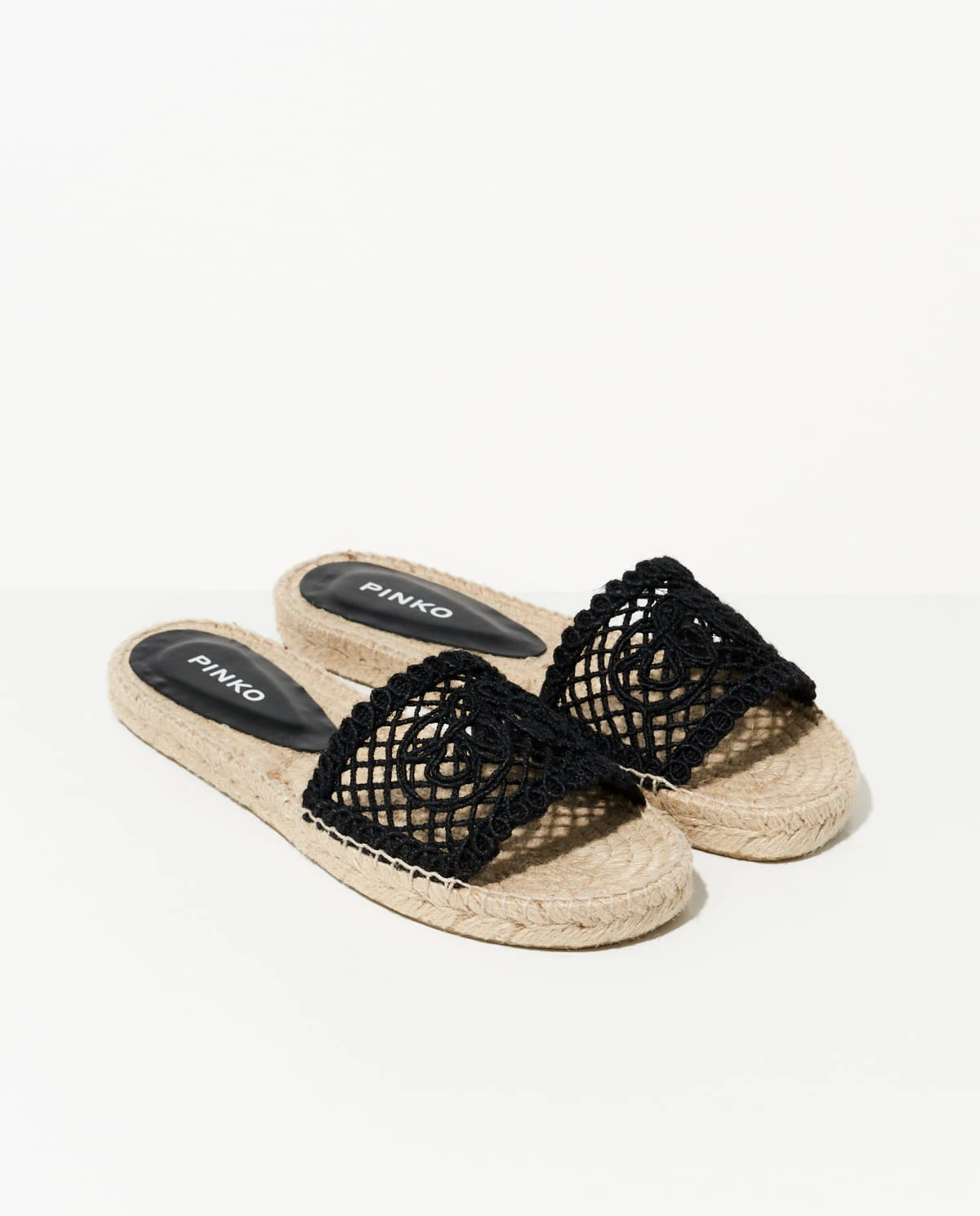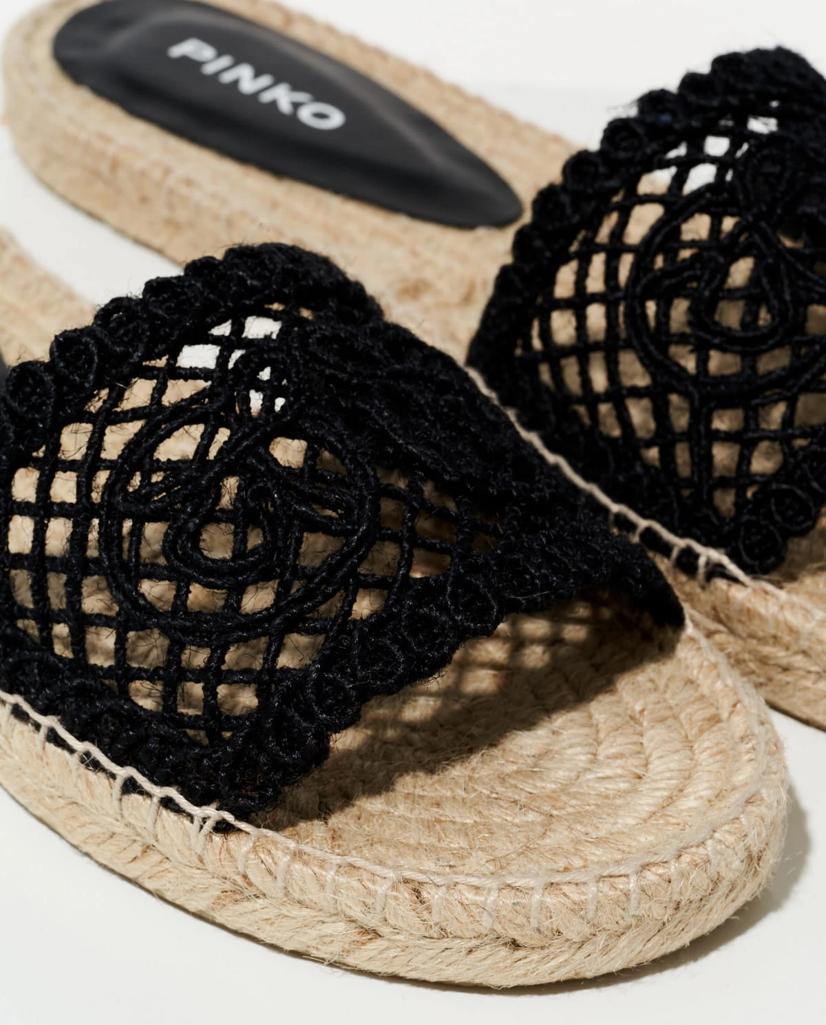 - Płaskie klapki z cholewką wykonaną z plecionego sznurka, spersonalizowane za pomocą wyhaftowanego logo Love Birds