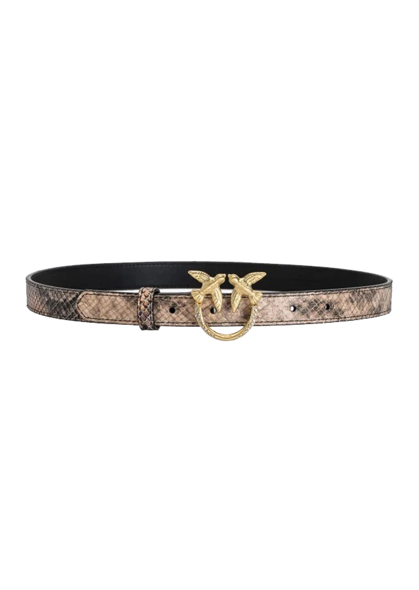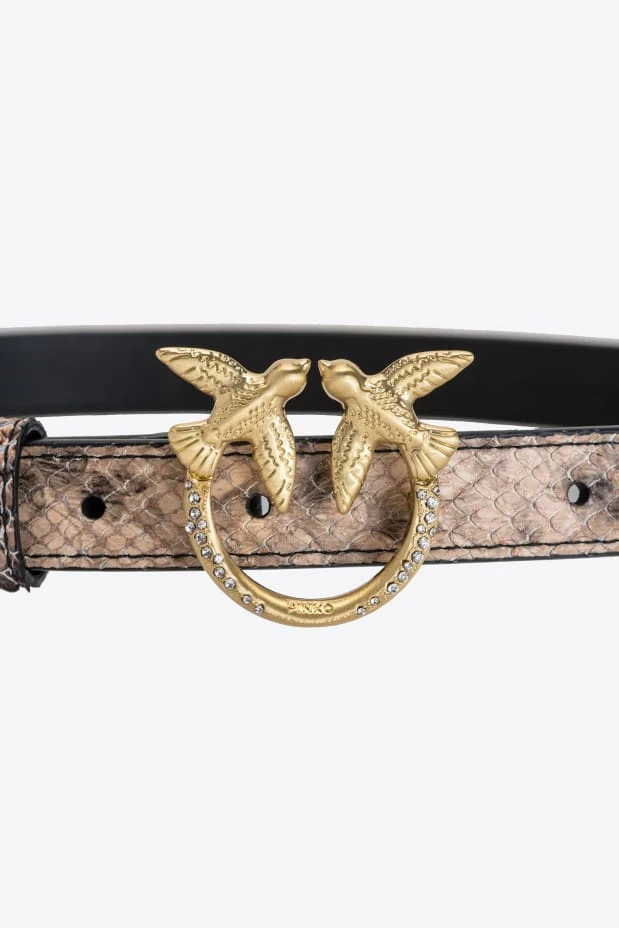 PINKO Cienki skórzany pasek Love Birds w deseń węża