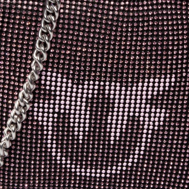 Torebka wykonana jest z drobnych cyrkonii oraz wysokiej jakości tworzywa sztucznego, co sprawia, że każdy detal emanuje luksusem i ekskluzywnością. Kolor różowy (Q19 LIGHT PINK) nadaje całości subtelności i delikatności, doskonale podkreślając Twój wyjątkowy gust.