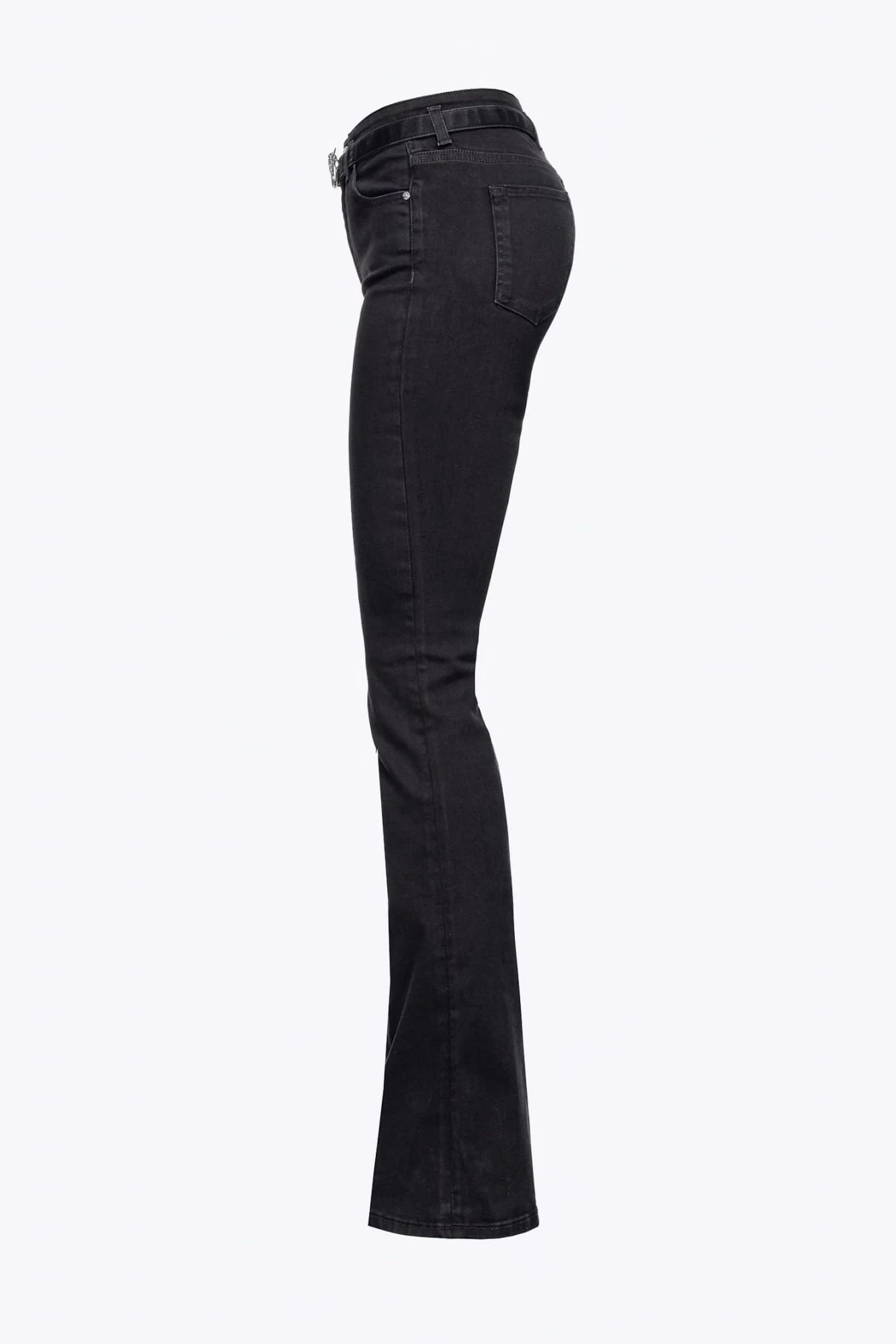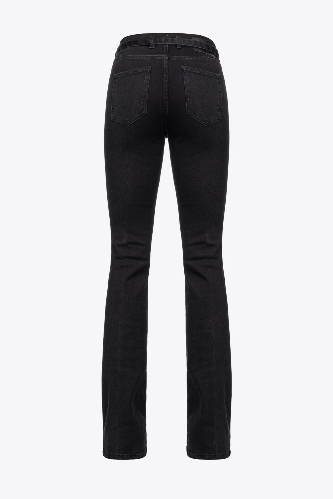 - Przylegające dżinsy w stylu jegginsów z pięcioma kieszeniami o kroju flare, z elastycznego czarnego denimu