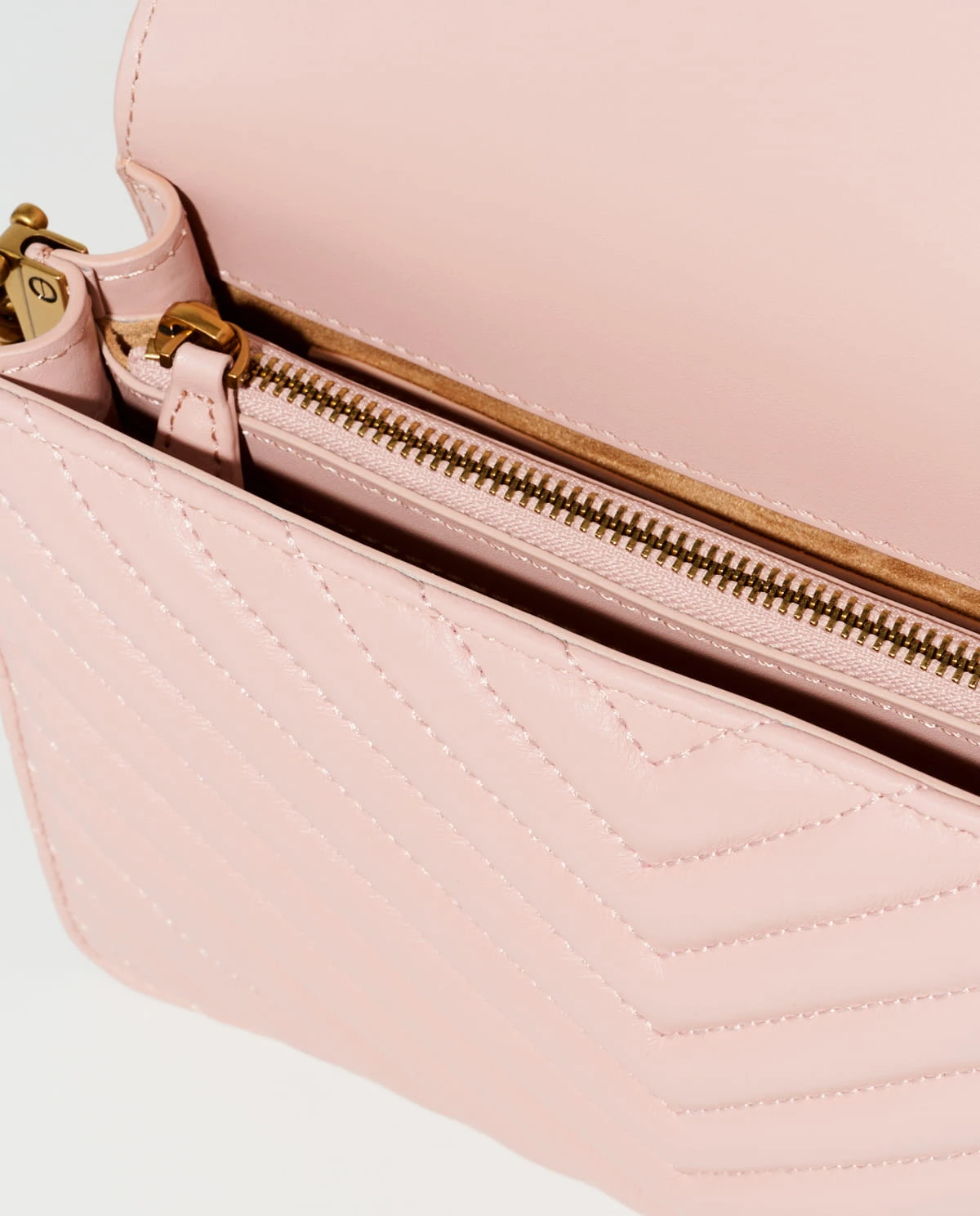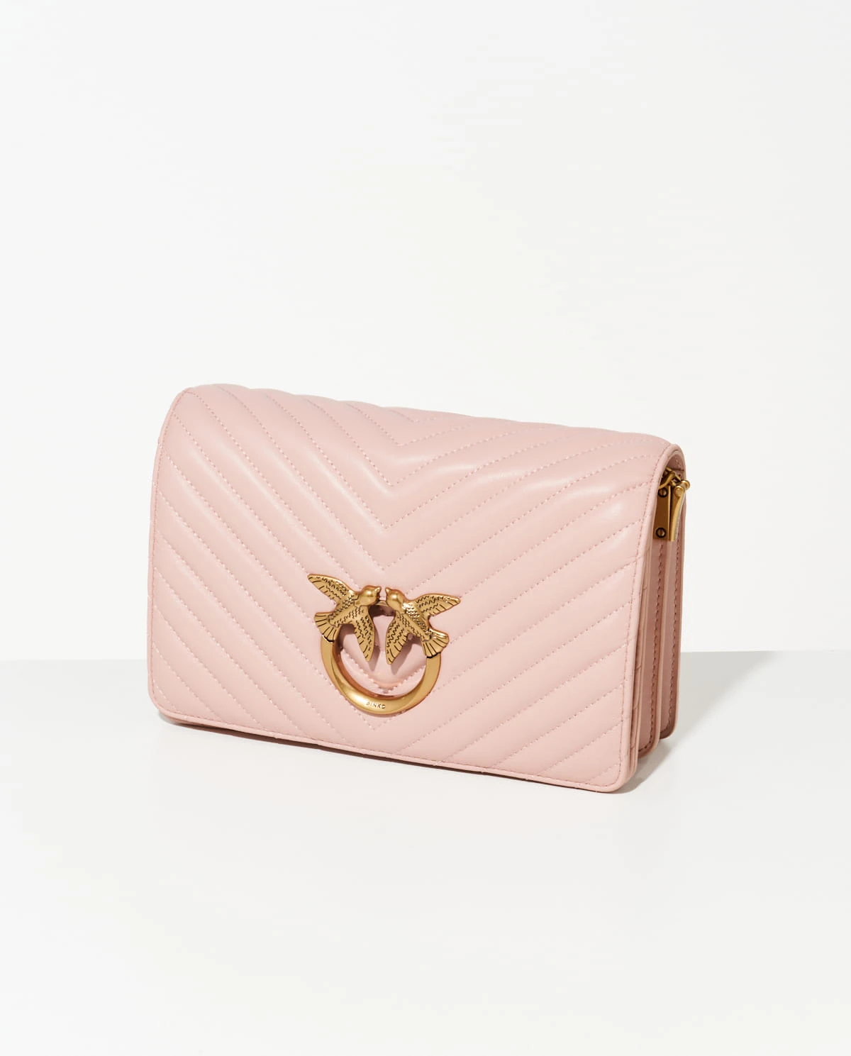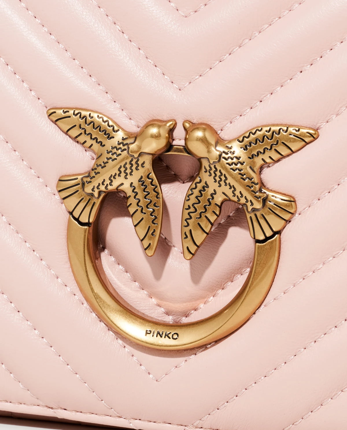 PINKO Różowa, pikowana torebka ze skóry Love Click Classic Chevron