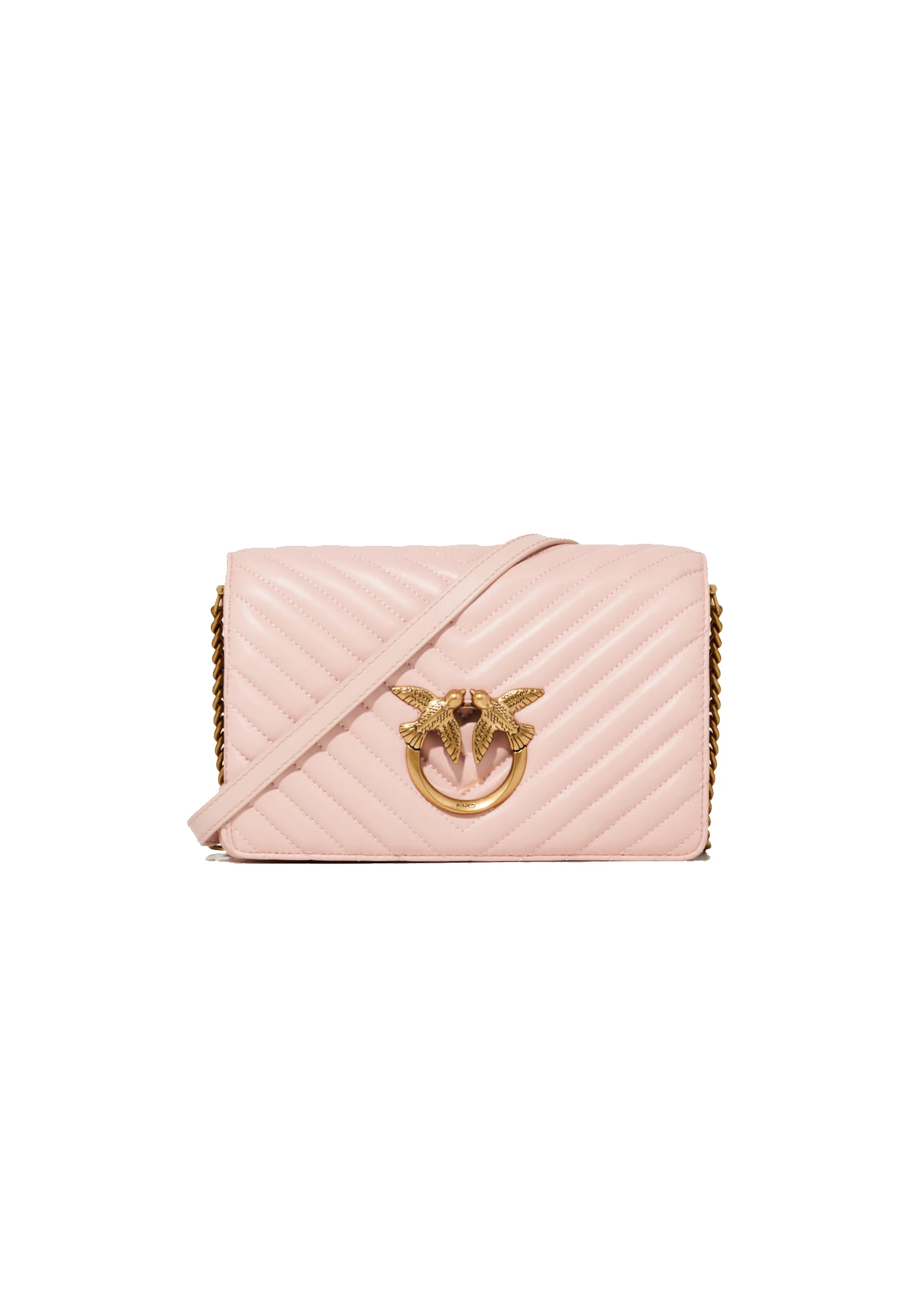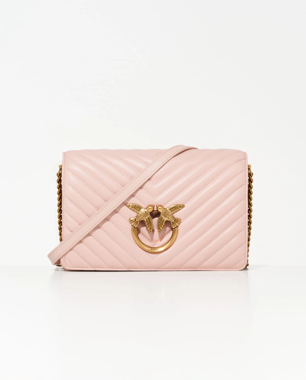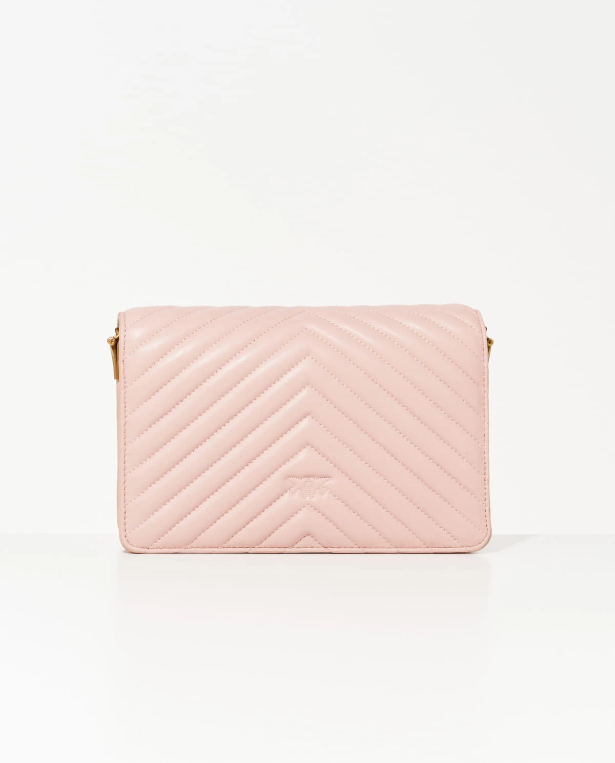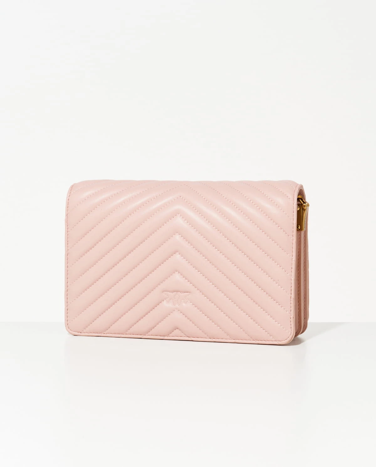 PINKO Różowa, pikowana torebka ze skóry Love Click Classic Chevron