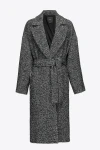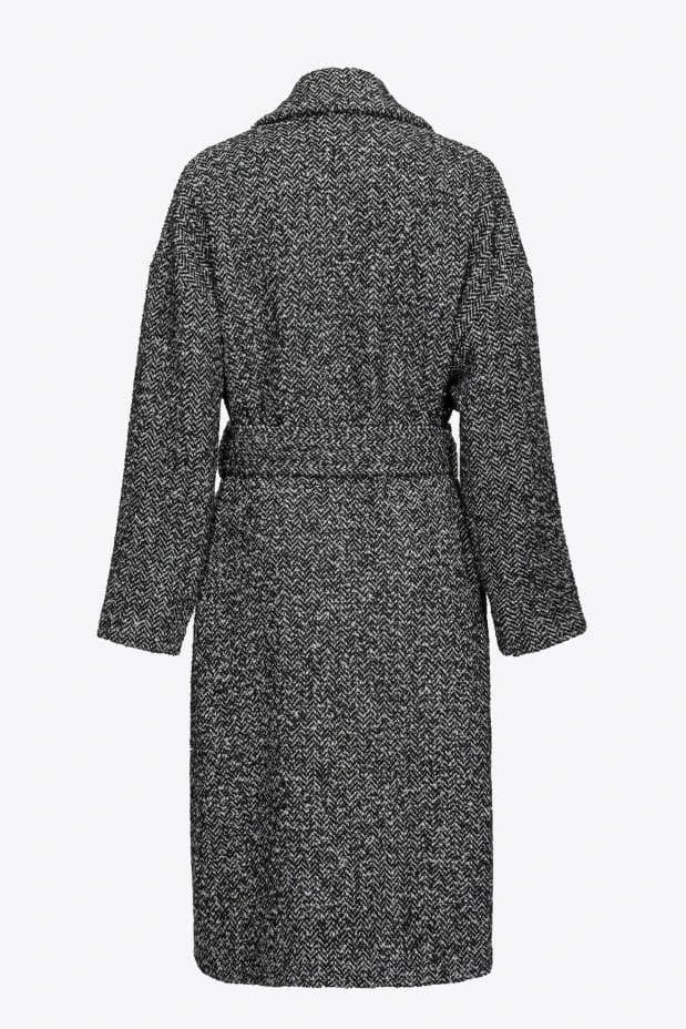 Długi płaszcz o szlafrokowym krojuWykonany z mieszanki wełnyDeseń jodełkiDługie rękawy o obniżonej linii ramionPo bokach pionowe kieszenie z ramkąPasek z tej samej tkaniny do wiązania w taliiNa podszewceMateriał: Tkanina zewnętrzna: POLIESTER 56% BAWEŁNA 23% AKRYL 11% WEŁNA 10% - Podszewka: ACETAT 67% POLIESTER 33%Kolor: szary, czarny (Zl2 NERO/GRIGI)Rozmiarówka standardowaProducent: PINKO