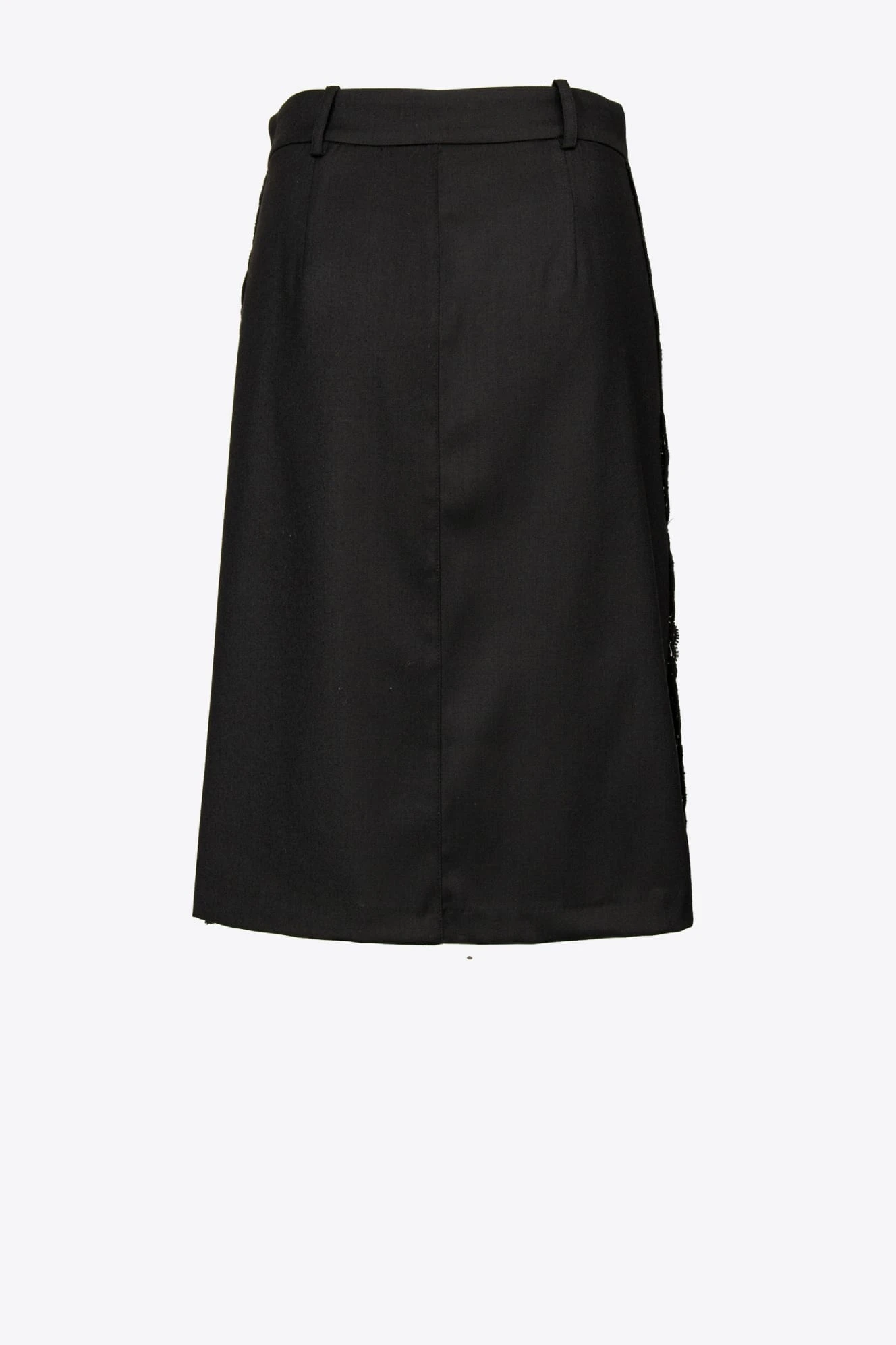 - Spódnica midi o ołówkowym fasonie, uszyta z elastycznej wełnianej flaneli z kontrastowymi wstawkami z boku
