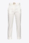 - Spodnie o linii slim, uszyte z elastycznego lnu, w komplecie pasek z tej samej tkaniny, z metalową klamrą Love Birds Diamond Cut
