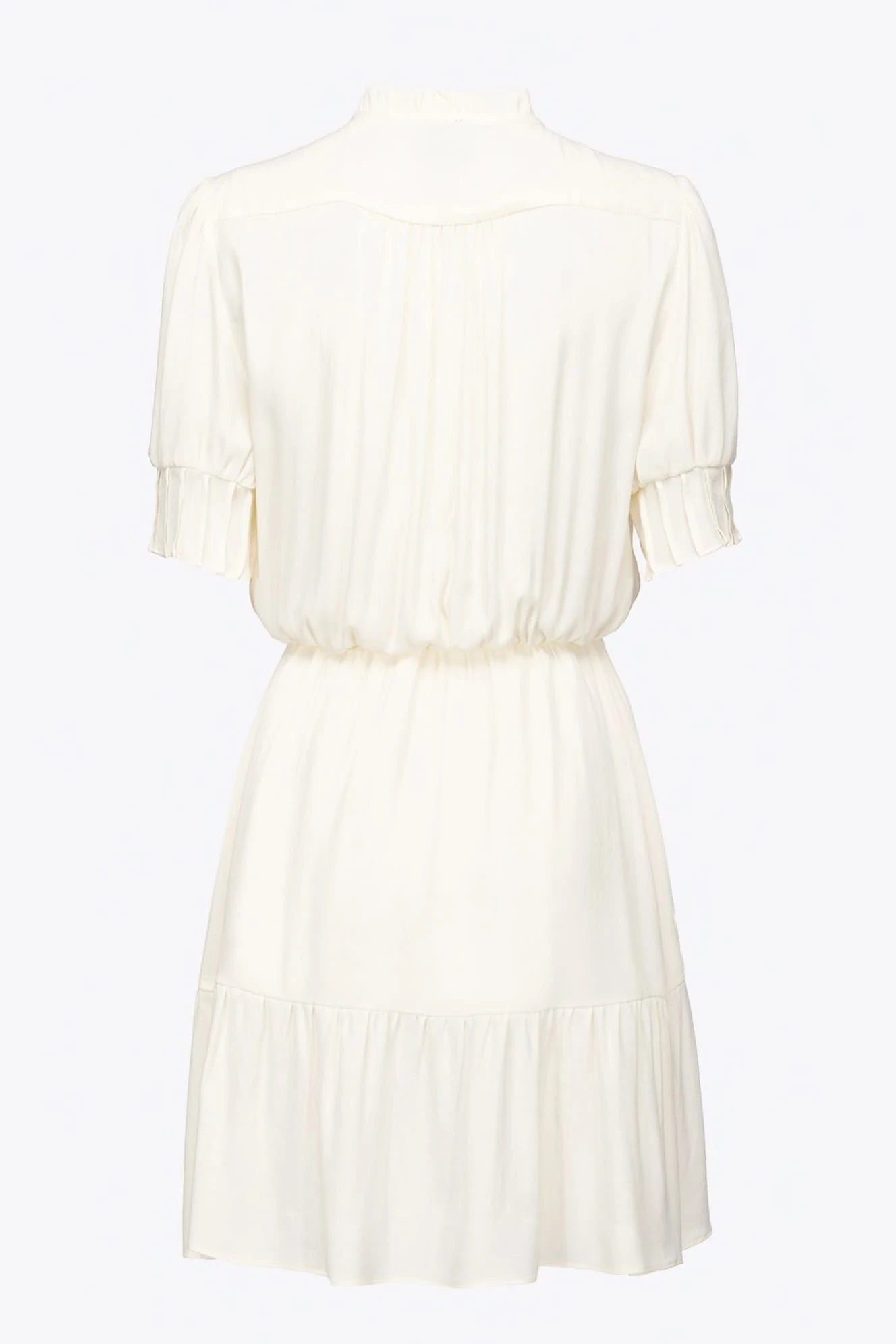 - Dekolt: Zabudowany z niewielką stójką – elegancki i subtelny, nadający sukience klasyczny charakter.