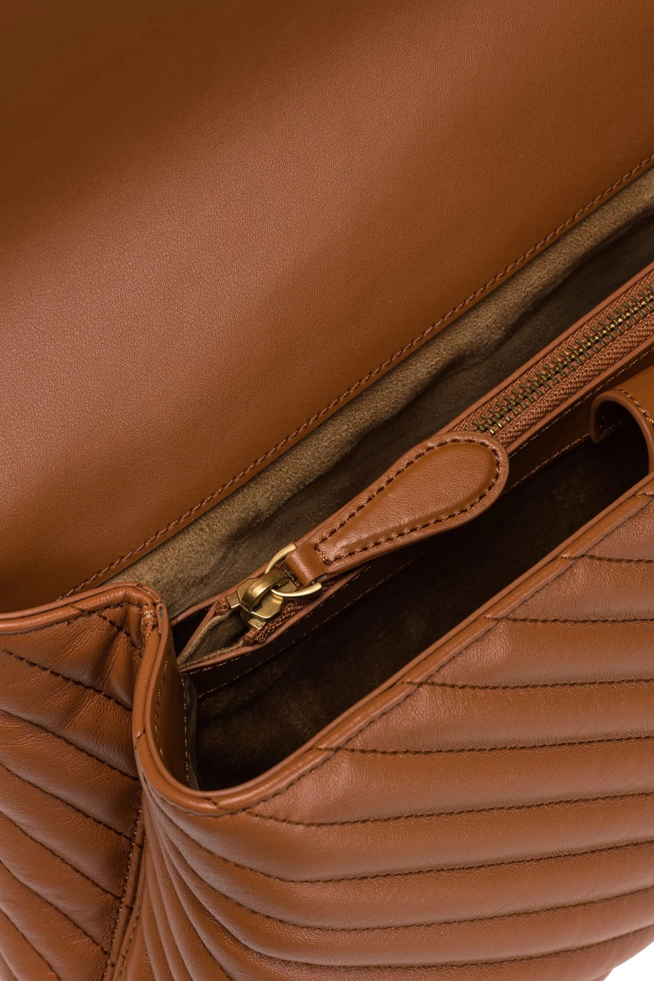 - We wnętrzu wykończonym podszewką z zamszowej mikrofibry wykonano przegródkę na zamek i boczną kieszonkę
