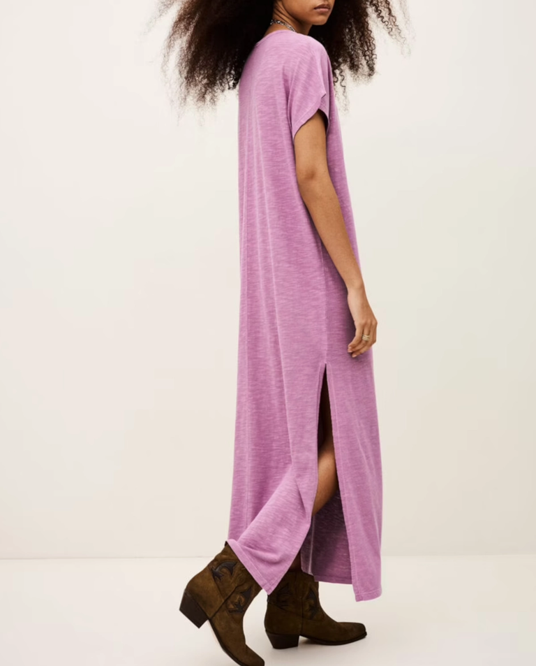 Elegancka i nowoczesna suknia o prostym, swobodnym kroju, łącząca wygodę z subtelnymi detalami.
