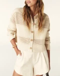 Krótki kardigan Val projektu marki ba&sh, wykonany w odcieniu nude / ecru. Model zapinany na guziki, o prostym, kobiecym fasonie. Sprawdzi się zarówno w codziennych, jak i bardziej eleganckich stylizacjach. Uniwersalny kolor ułatwia łączenie z innymi elementami garderoby.