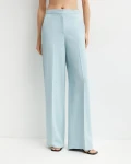 Te błękitne spodnie od włoskiej marki PINKO to kwintesencja elegancji z nowoczesnym twistem. Model z wysokim stanem pięknie podkreśla talię, a kant na nogawkach dodaje im szyku i struktury.