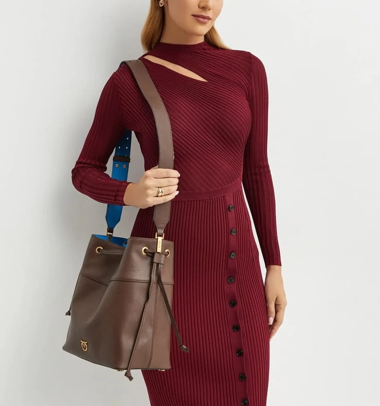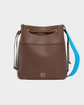 Brązowa skórzana kubełkowa torebka z logo SECCHIELLO CLASSIC PINKO