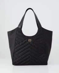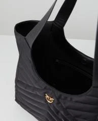 Czarna duża materiałowa torba z pikowaniem TOTE BAG PINKO