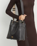Czarna skórzana kubełkowa torebka z logo PINKO