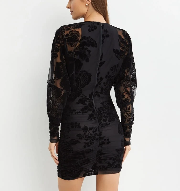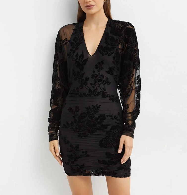 Sukienka Roulette marki Pinko w klasycznej czerni, wykonana z delikatnego tiulu. Zdobiona ozdobnym nadrukiem na całej powierzchni, z dekoltem w serek i długimi rękawami. Model wyprodukowany we Włoszech, łączący elegancję z subtelną lekkością.