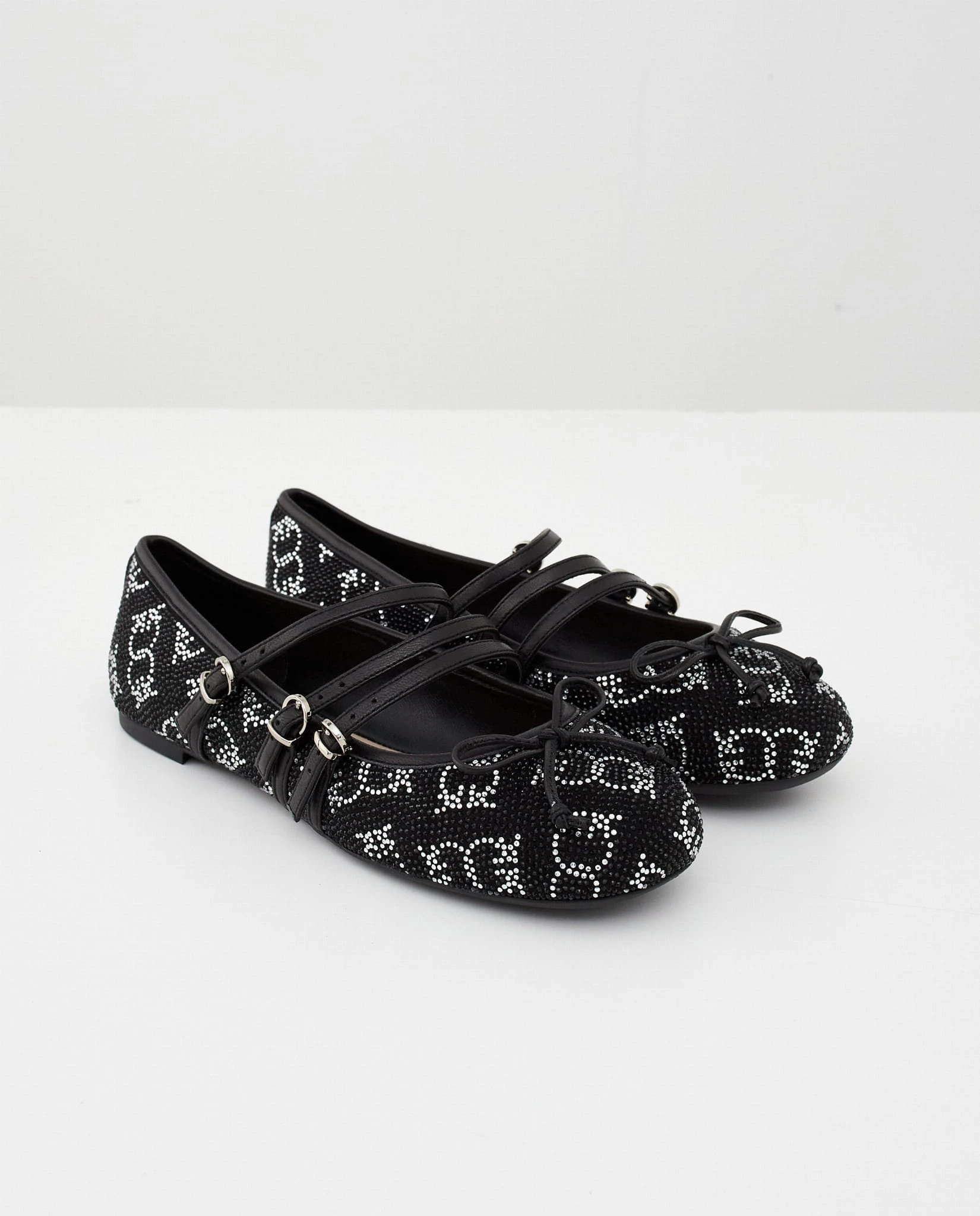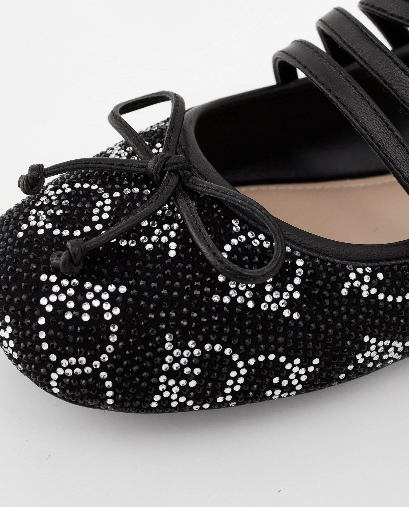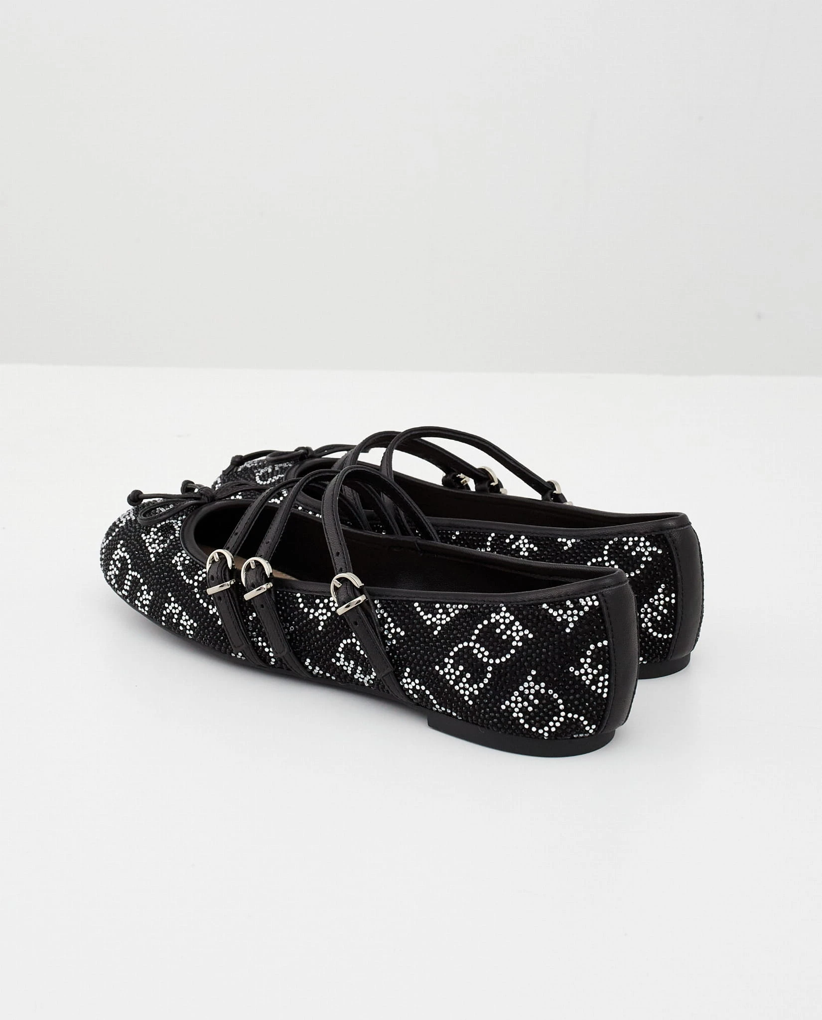 Czarne skórzane baleriny z kryształkami GIOIA
