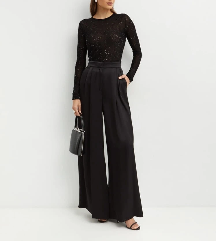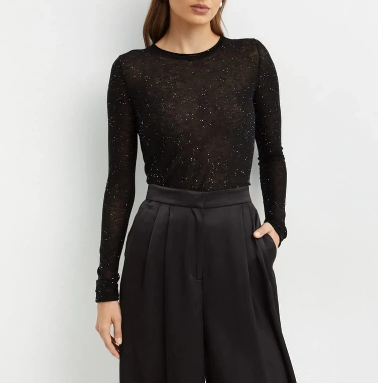 Czarny sweter z okrągłym dekoltem z cekinami PICO PINKO