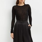 Sweter z okrągłym dekoltem, wykonany z półprzezroczystej mieszanki wełny – lekkiej, miękkiej przędzy, niemal niewyczuwalnej na skórze, która tworzy zmysłowy i wyrazisty efekt.