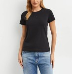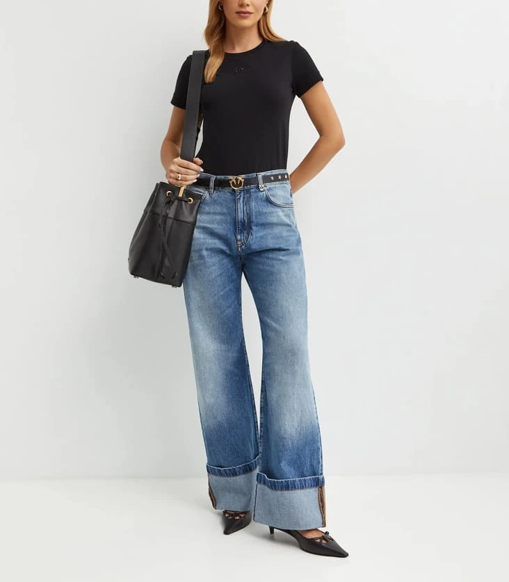 Czarny t-shirt z krótkim rękawem i haftowanym logo BUSSOLOTTO PINKO