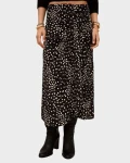 Sukienka Dopera marki BA&SH w kolorze czarnym, zdobiona ozdobnym printem na całej powierzchni. Model midi o asymetrycznym kroju z zakładkami i subtelnymi marszczeniami, które podkreślają lekkość sylwetki. Wyposażona w elastyczną talię oraz boczny zamek błyskawiczny, łączy wygodę z eleganckim stylem.