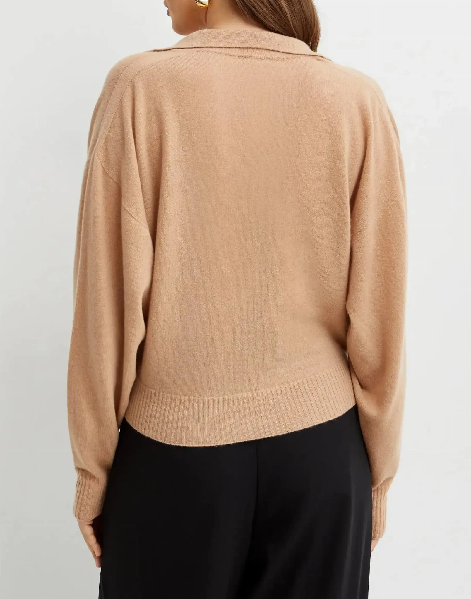 Sweter marki Pinko w kolorze brązowym to elegancka propozycja o krótszym kroju, idealna do stylizacji na co dzień. Posiada stójkę, która subtelnie otula szyję, a dekolt w serek dodaje mu zmysłowego charakteru. Długie rękawy o obniżonej linii ramion tworzą luźniejszy, nowoczesny fason, który jest wygodny i modny. Brzegi oraz dół swetra wykończone są ściągaczem, co zapewnia ładne dopasowanie i eleganckie wykończenie. Wykonany z miękkiej przędzy z mieszanki wełny i kaszmiru, sweter jest przyjemny w dotyku, ciepły i komfortowy. To doskonały wybór dla osób, które cenią elegancję połączoną z wygodą.