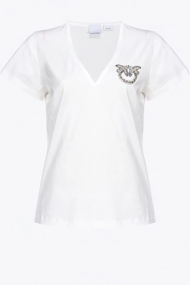 PINKO Biały t-shirt Turbato Scollo V
