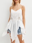 Top został zaprojektowany z myślą o kobiecych kształtach. Cienkie ramiączka i dekolt w serek podkreślają wdzięk Twojej sylwetki, podkreślając jej delikatność i kobiecość. Zarówno z przodu, jak i z tyłu, dół został wykończony w szpic, co nadaje całości subtelnego wykończenia.