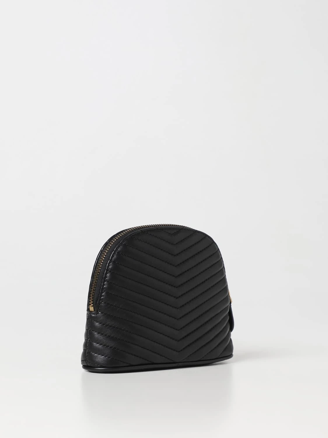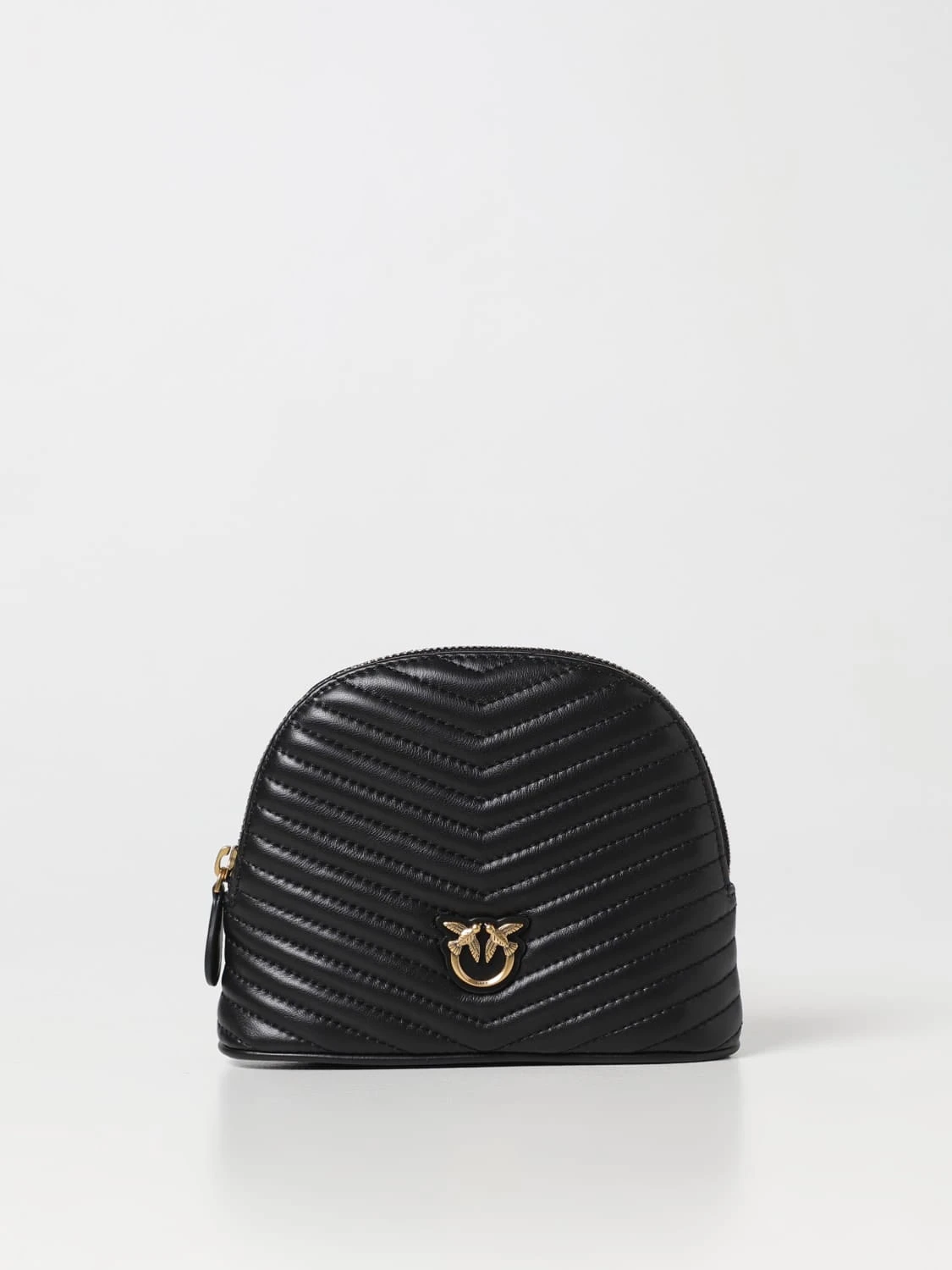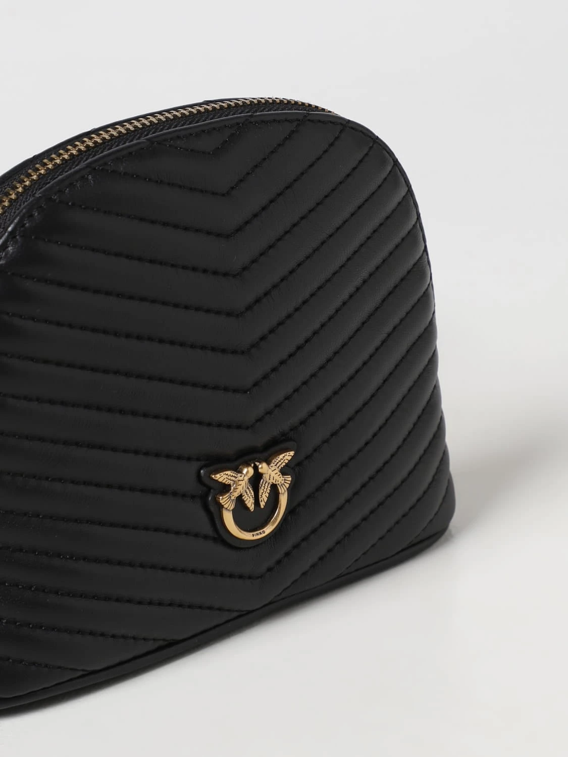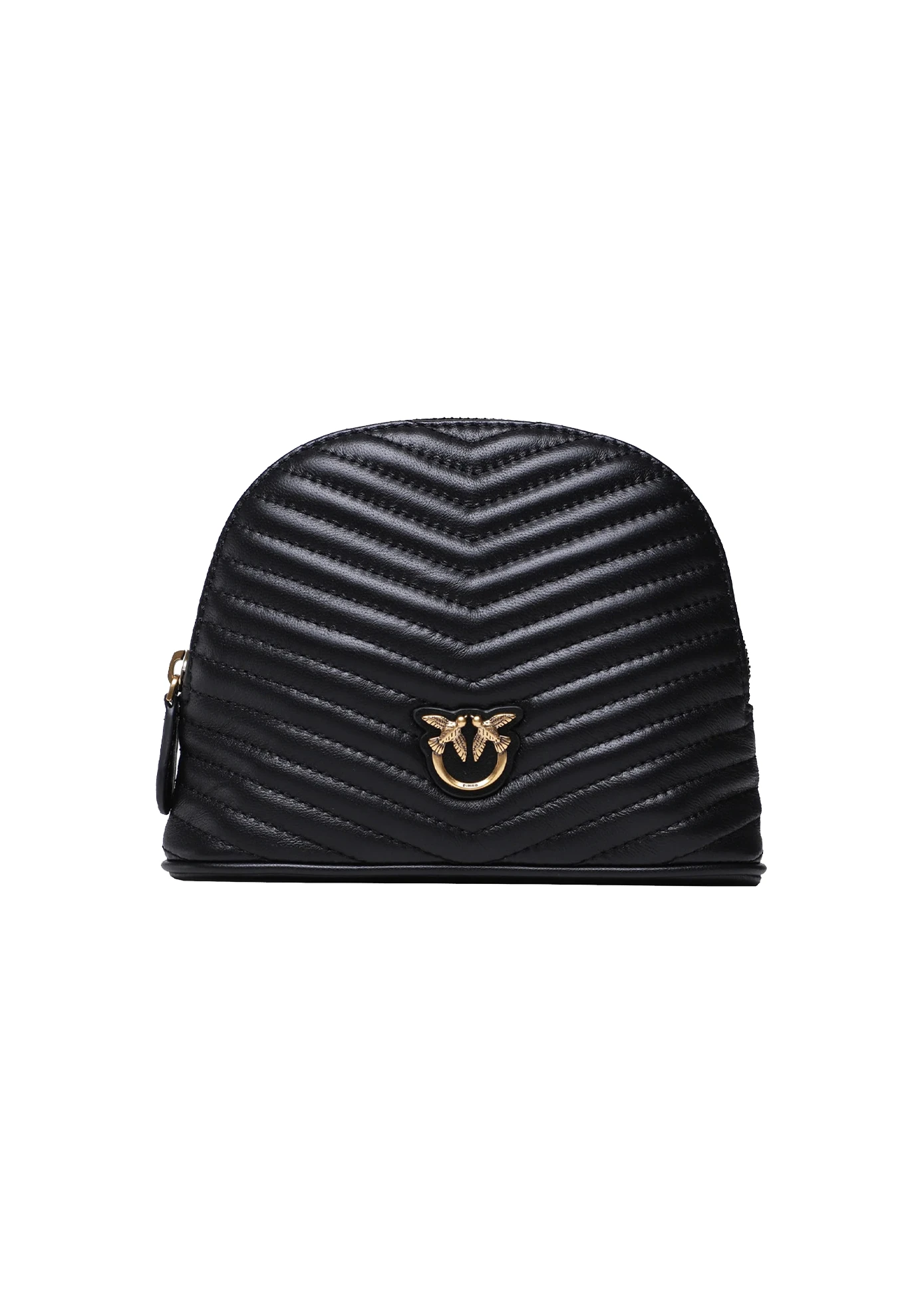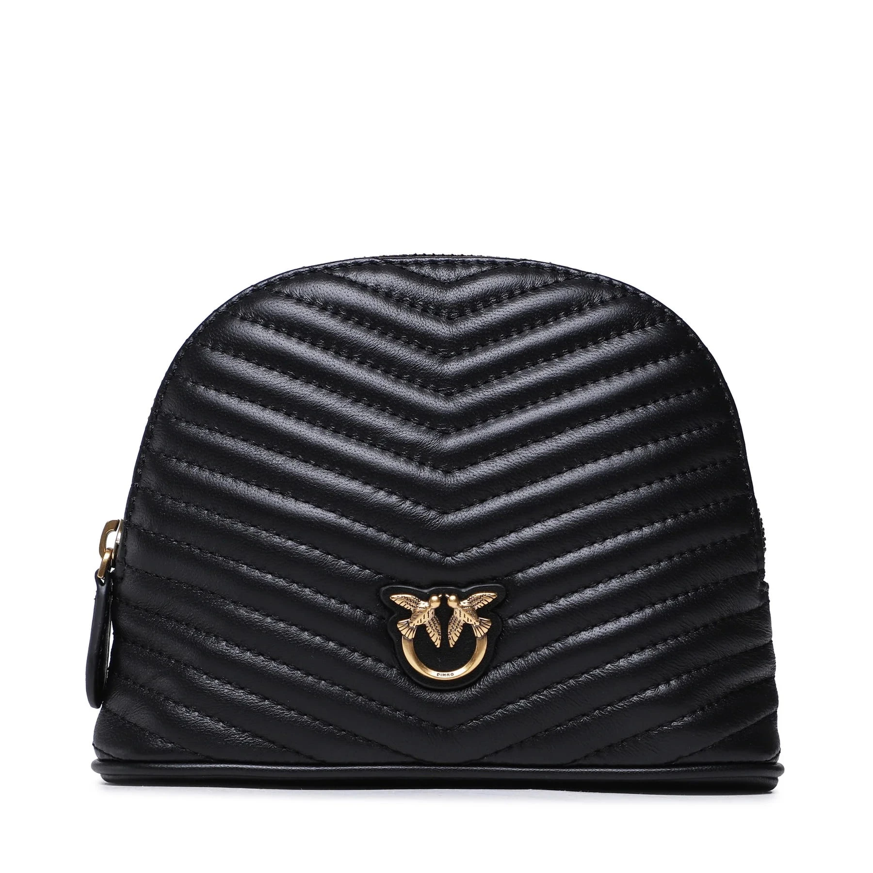 PINKO Czarna, pikowana kosmetyczka ze skóry Trousse Chevron