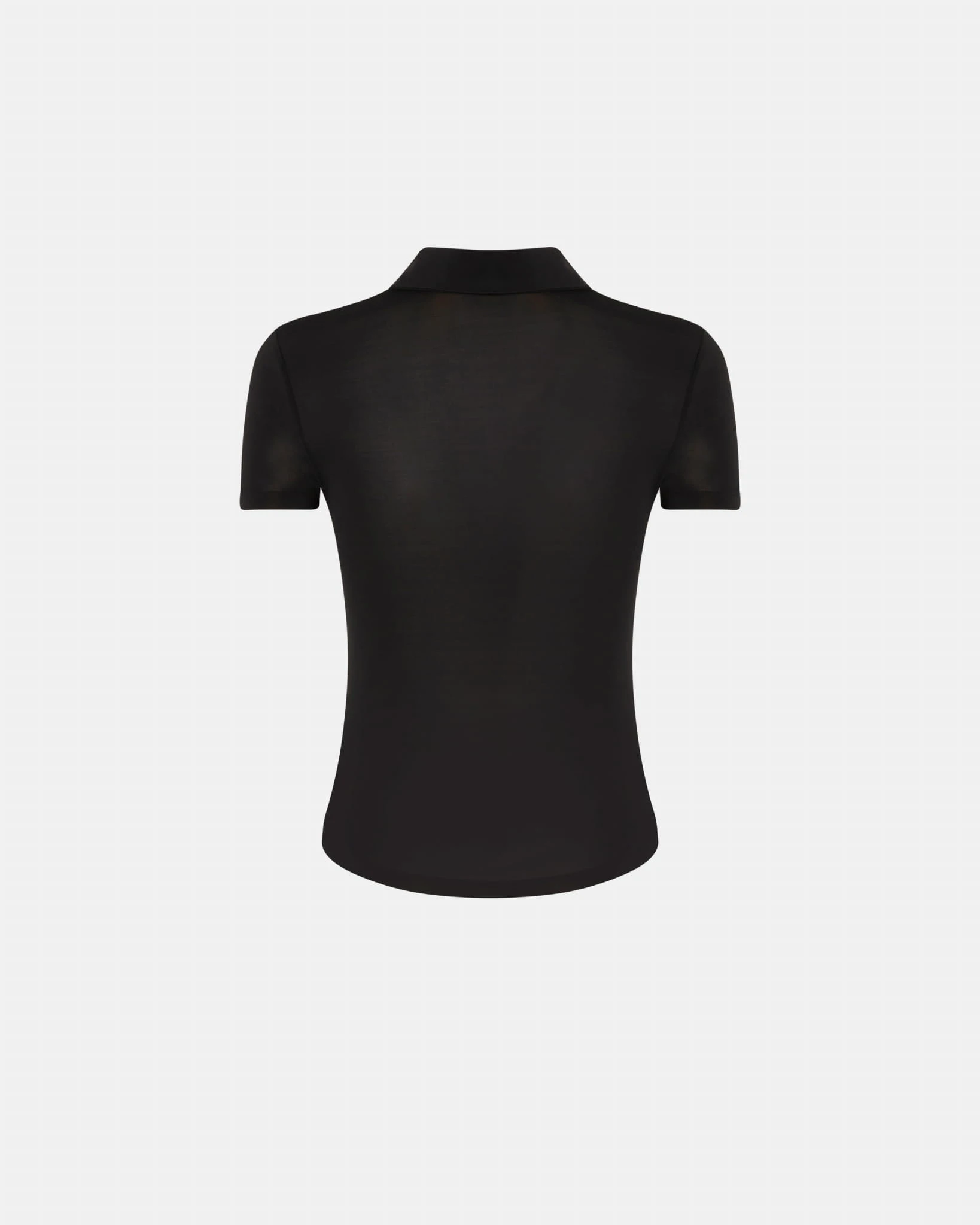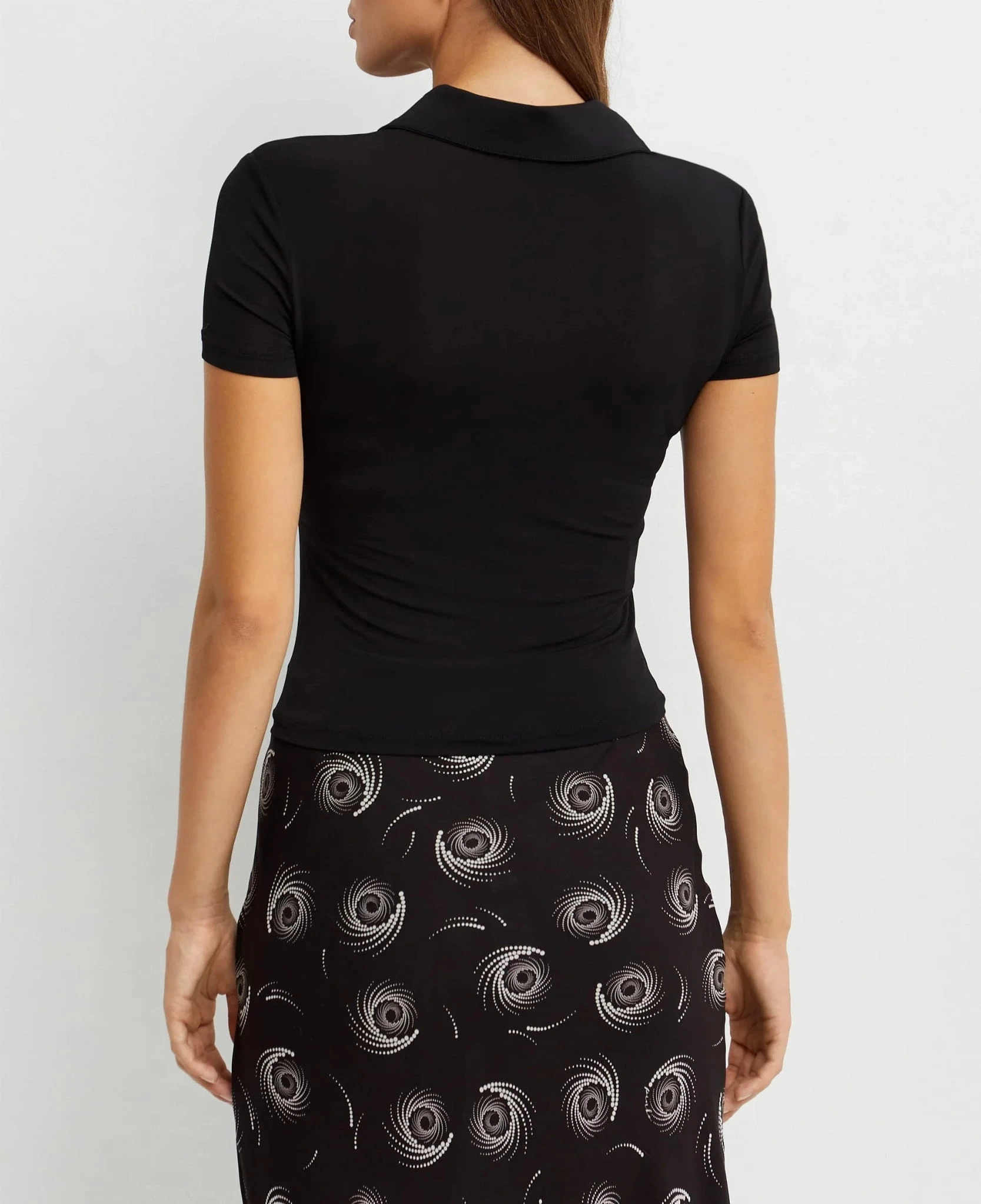 - Czarna, wiskozowa bluzka polo Picozza PINKO, z krótkim rękawkiem