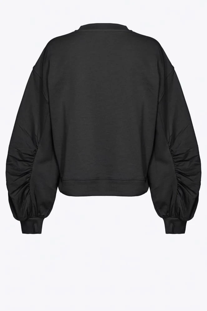 Okrągły dekolt oraz mankiety i dół wykończone elastyczną gumką gwarantują wygodę noszenia i idealne dopasowanie. Długi rękaw o obniżonej linii ramion i szerokim kroju z marszczeniem z tyłu dodaje bluzie nieco luzu i stylowego wyrazu. To nie tylko bluza - to sposób na poczucie swobody bez rezygnacji z elegancji.