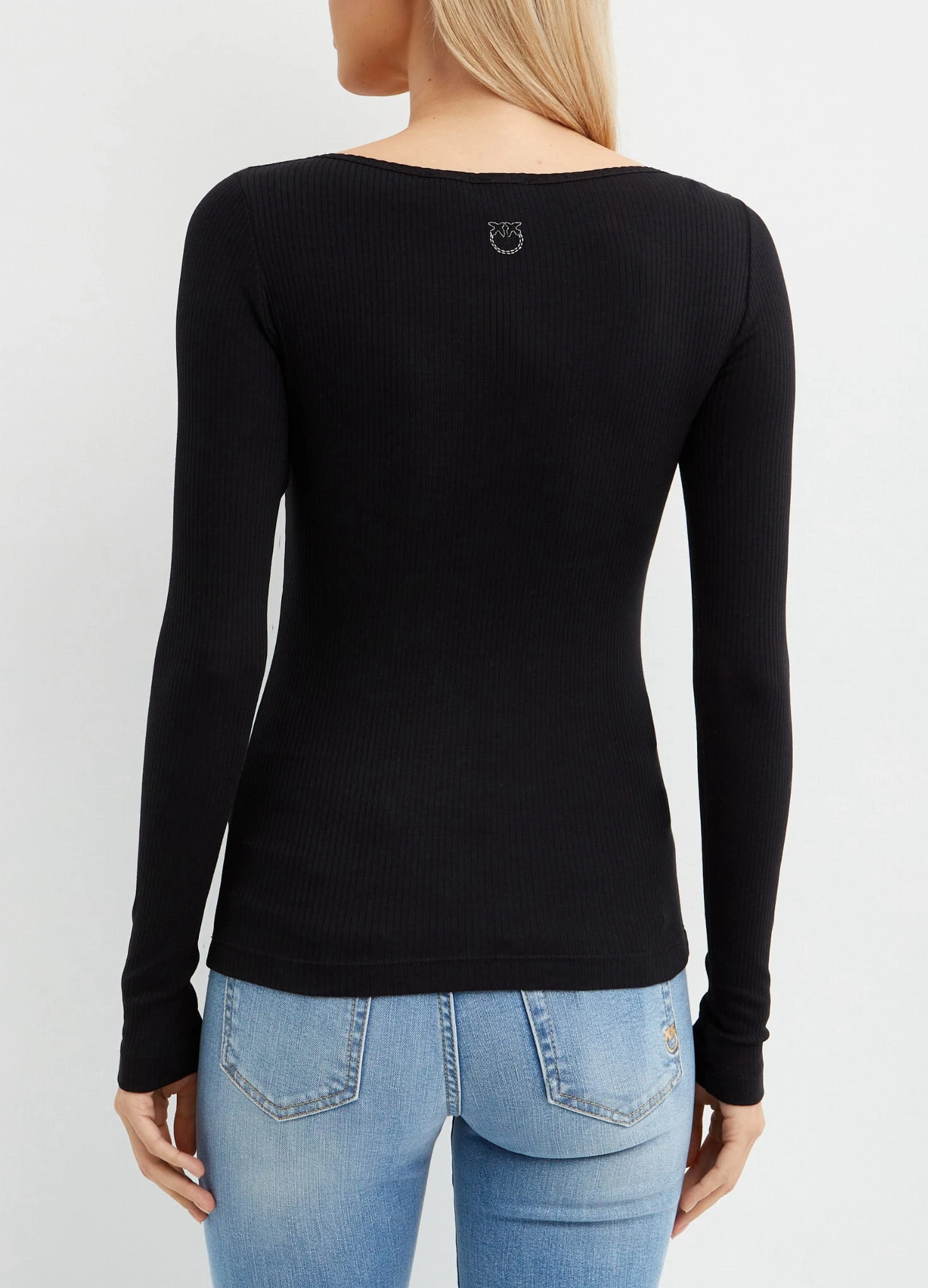 - Czarna, prążkowana bluzka z długim rękawem Madagascar od PINKO