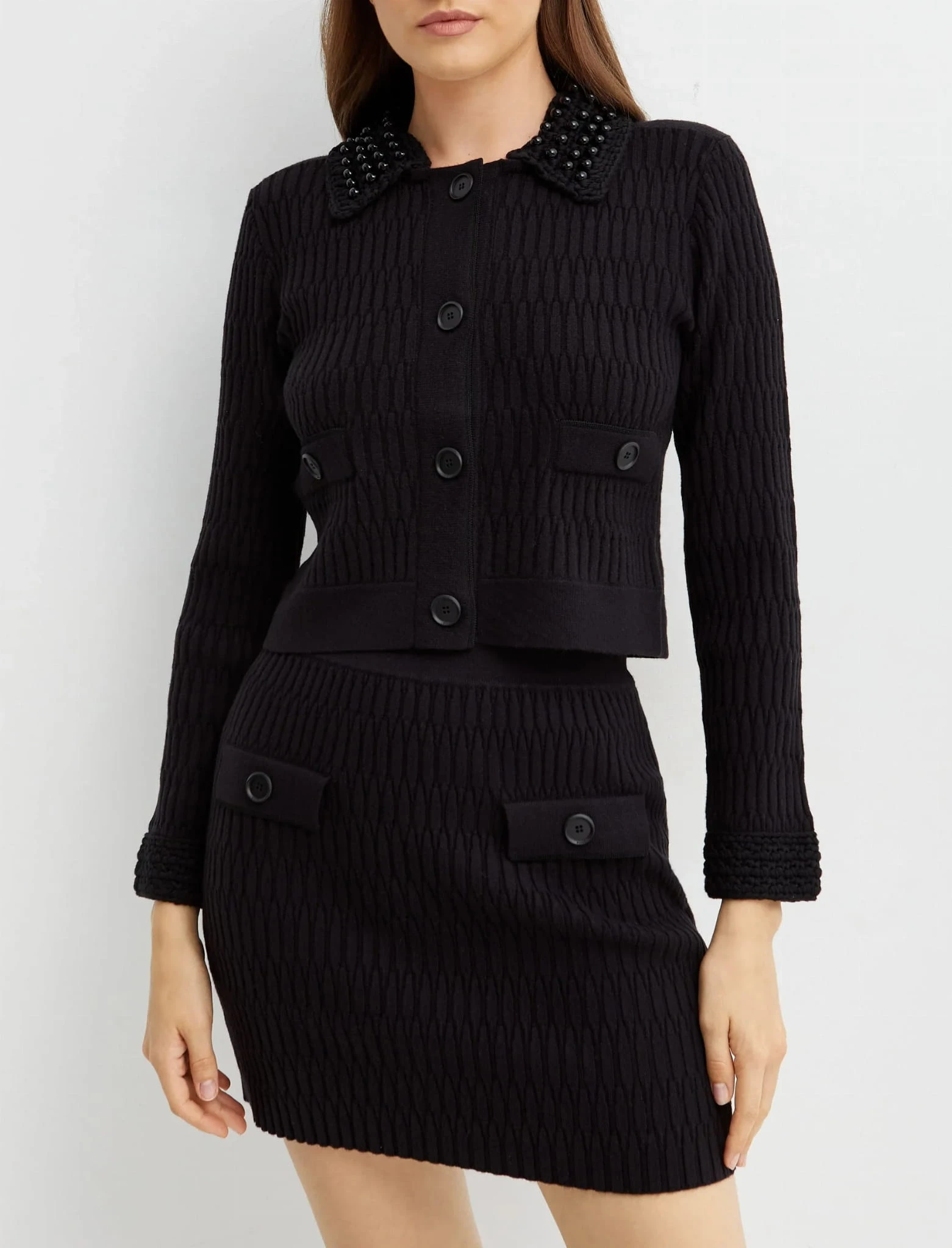 Ta spódnica łączy elegancki fason z subtelnymi detalami, tworząc ponadczasowy element, który sprawdzi się w wielu stylizacjach: