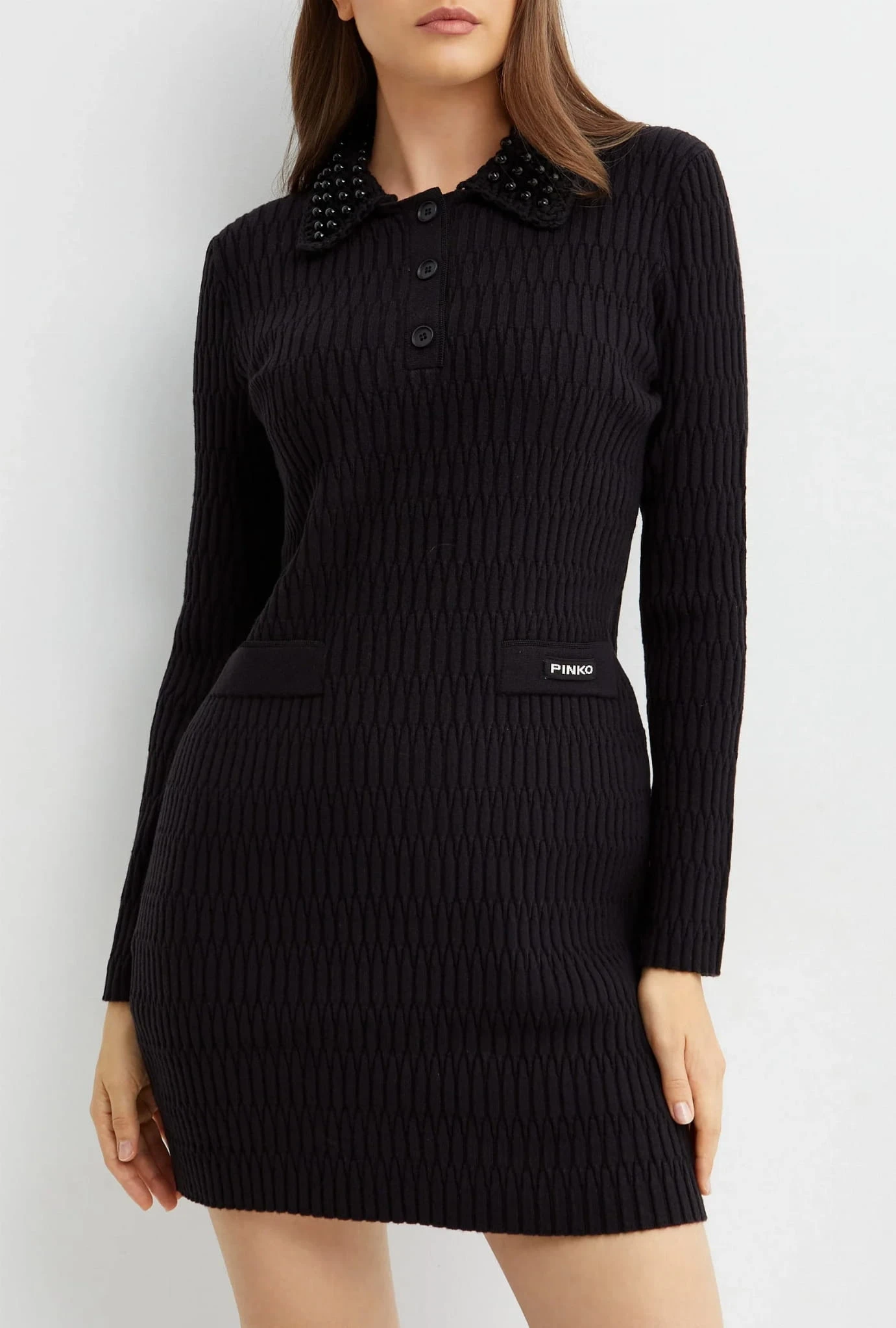 PINKO Czarna sukienka z dzianiny York Chocolate