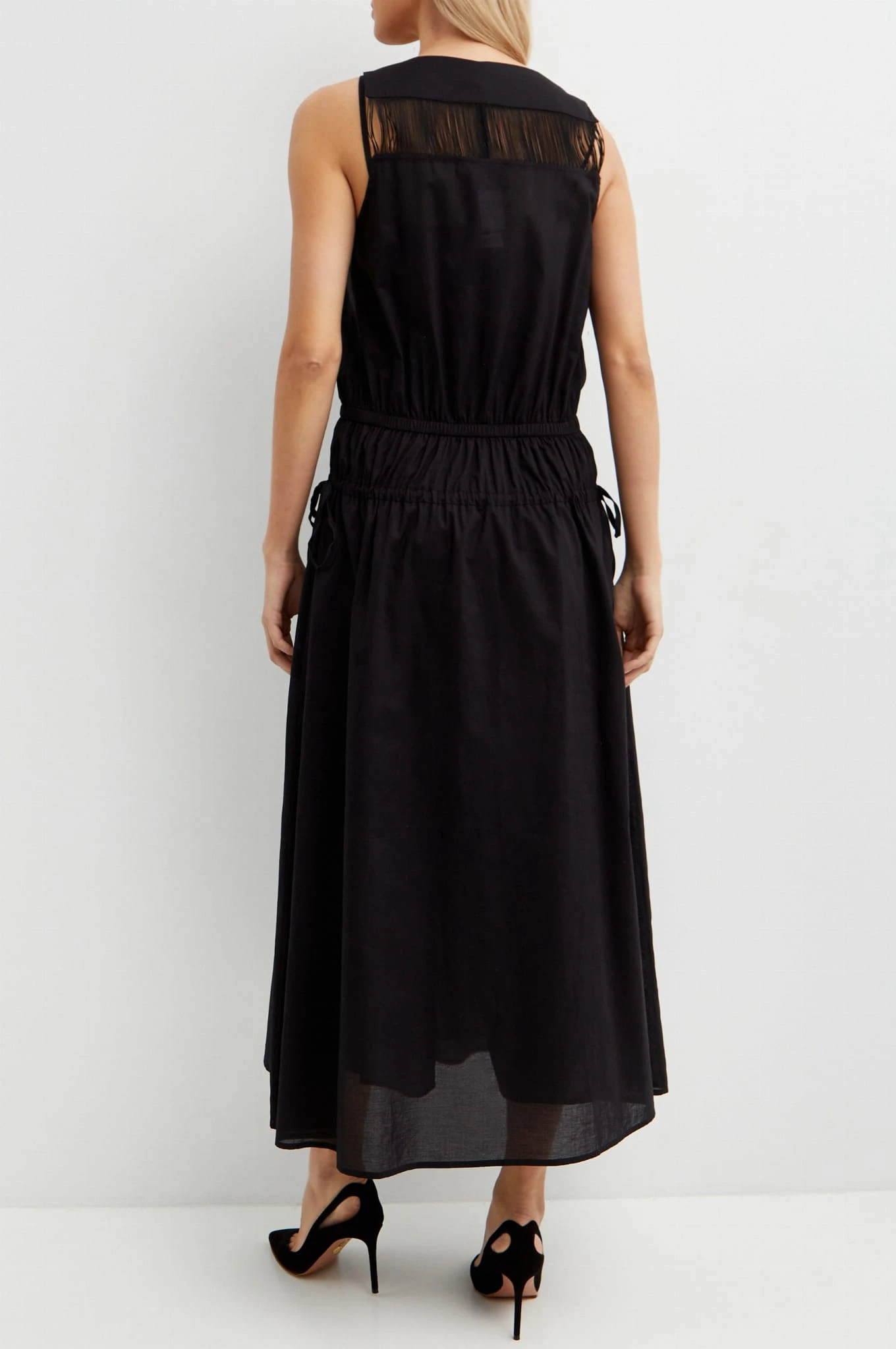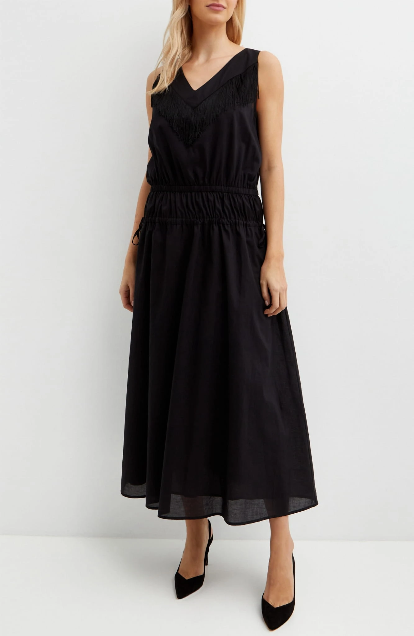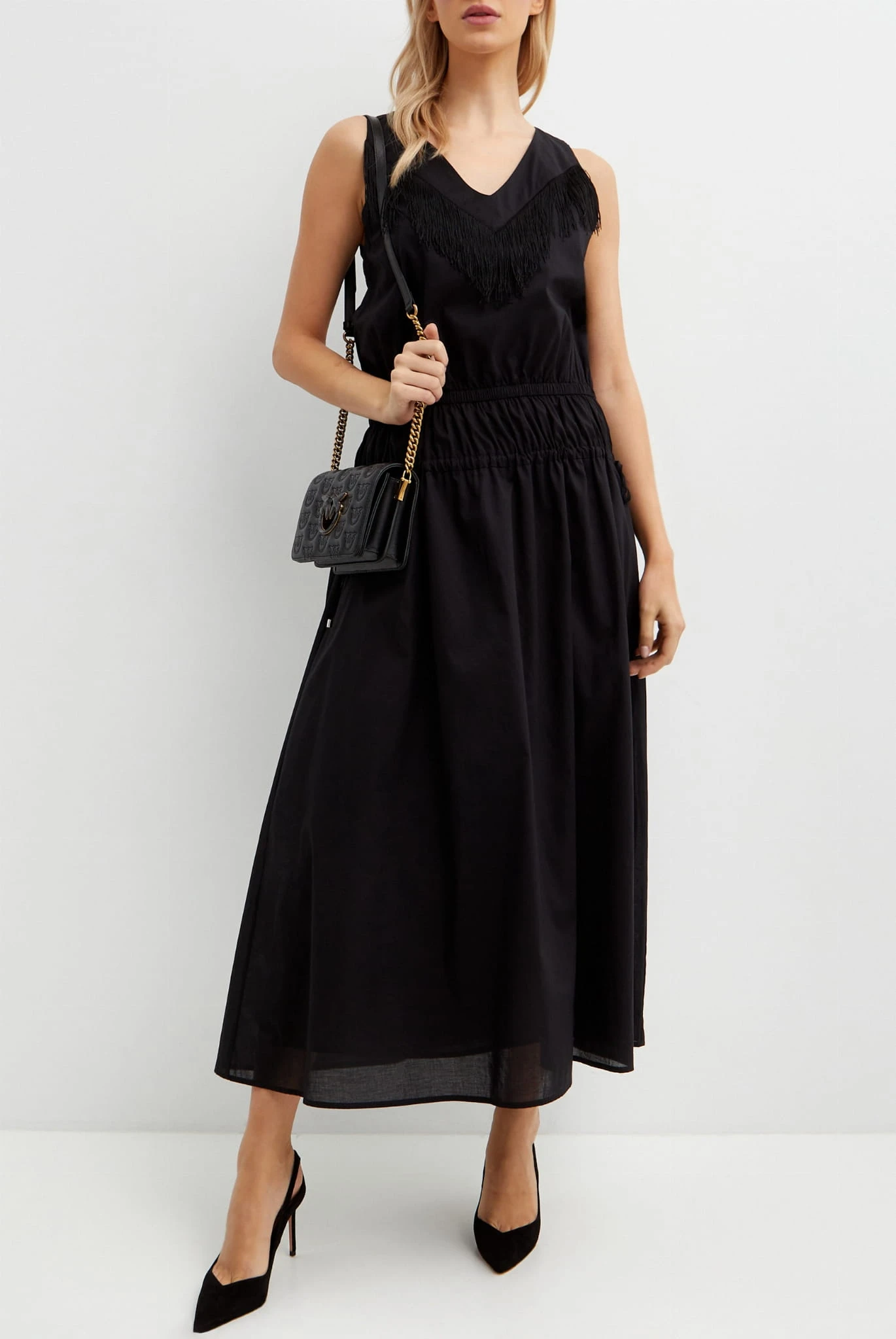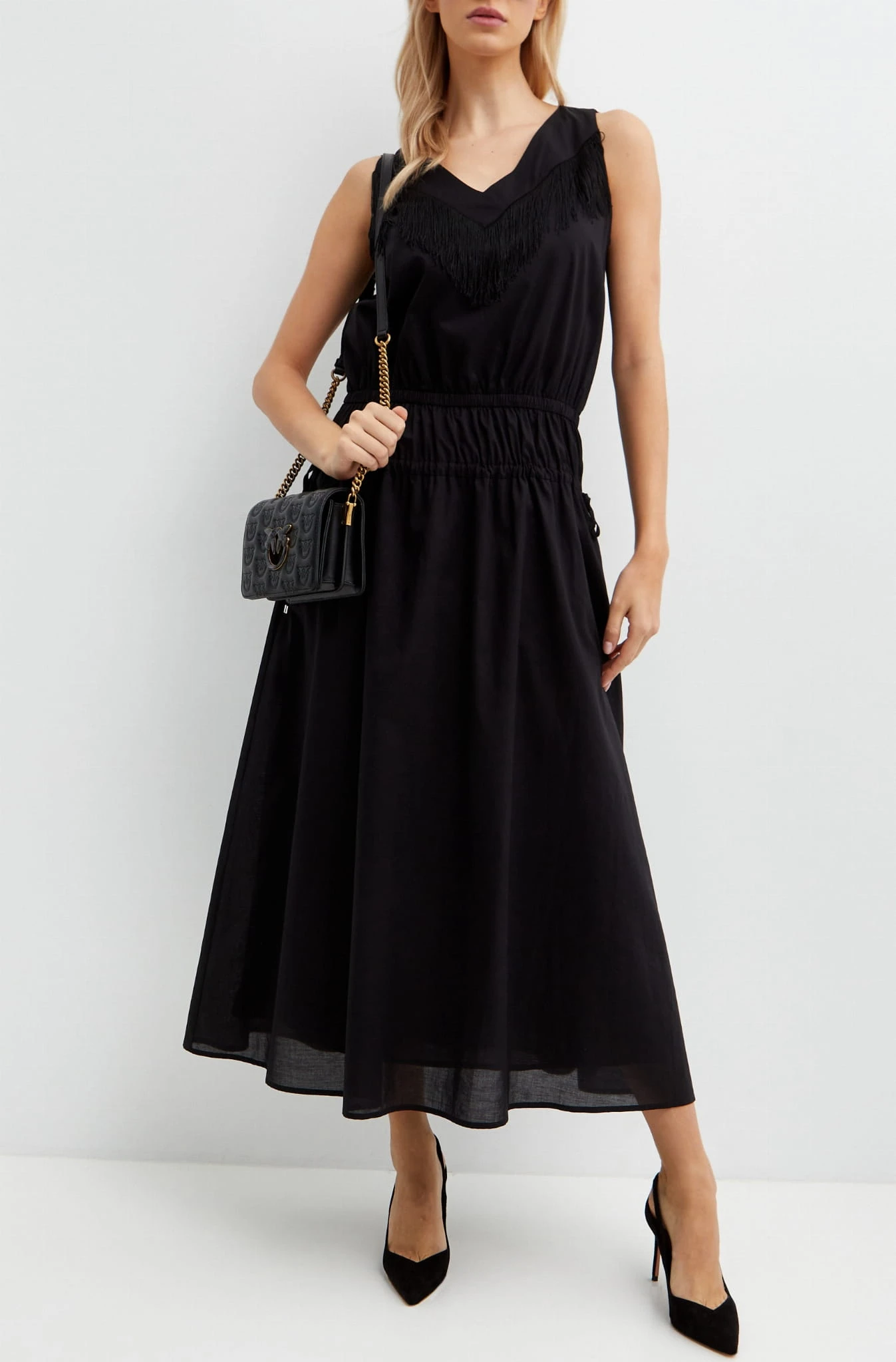 PINKO Czarna sukienka z frędzlami Beginners