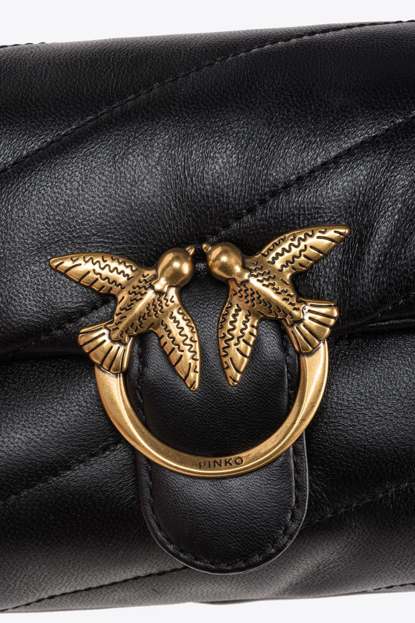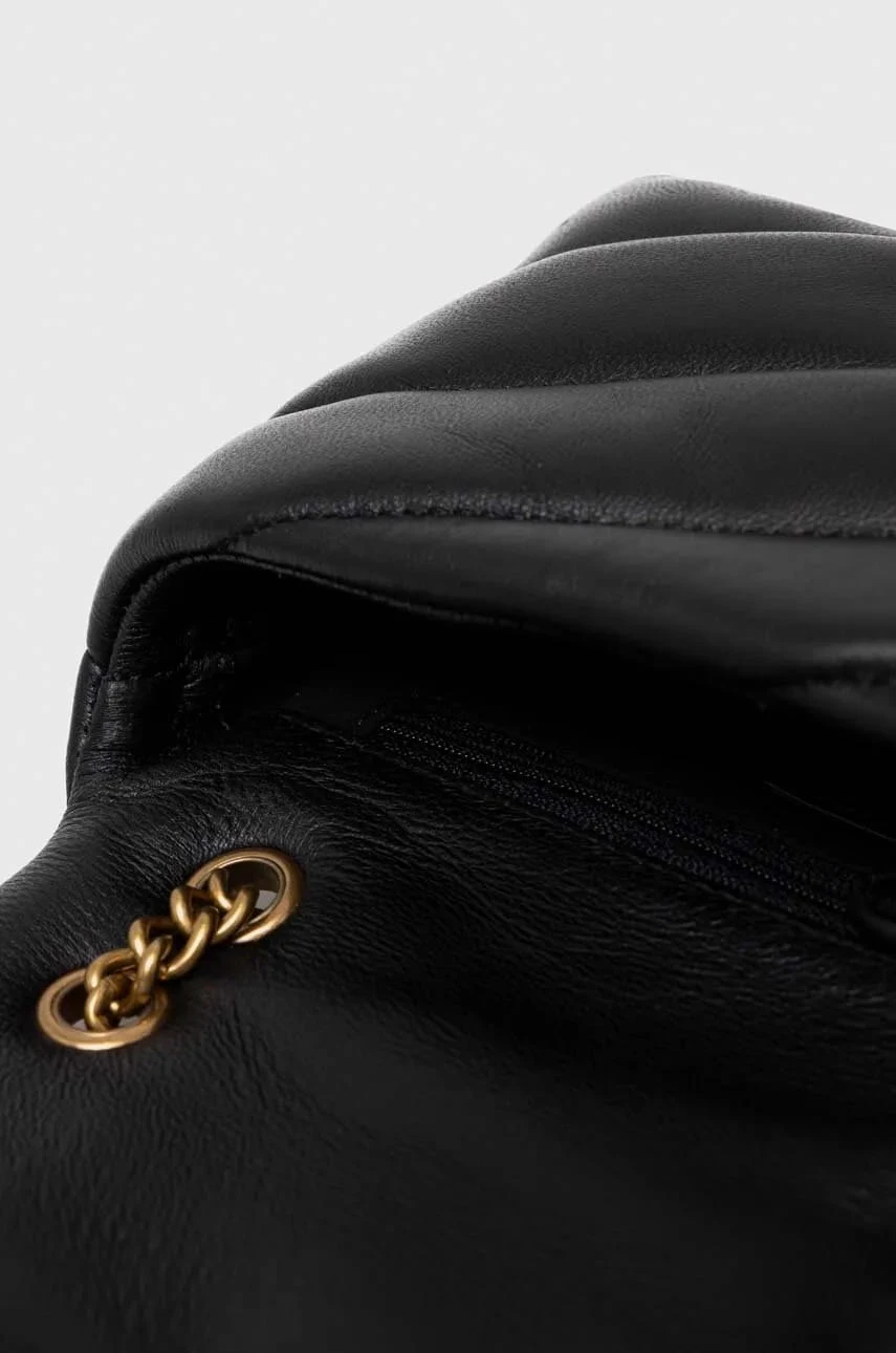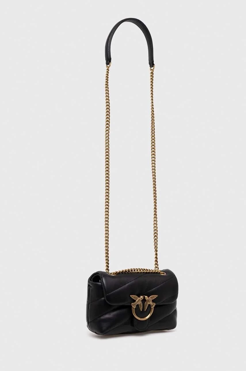 Zapięcie torebki to kultowa metalowa klamra Love Birds Diamond Cut oraz metalowe elementy w kolorze antique gold. To nie tylko funkcjonalne rozwiązanie, ale także wyraz stylu i marki Pinko.