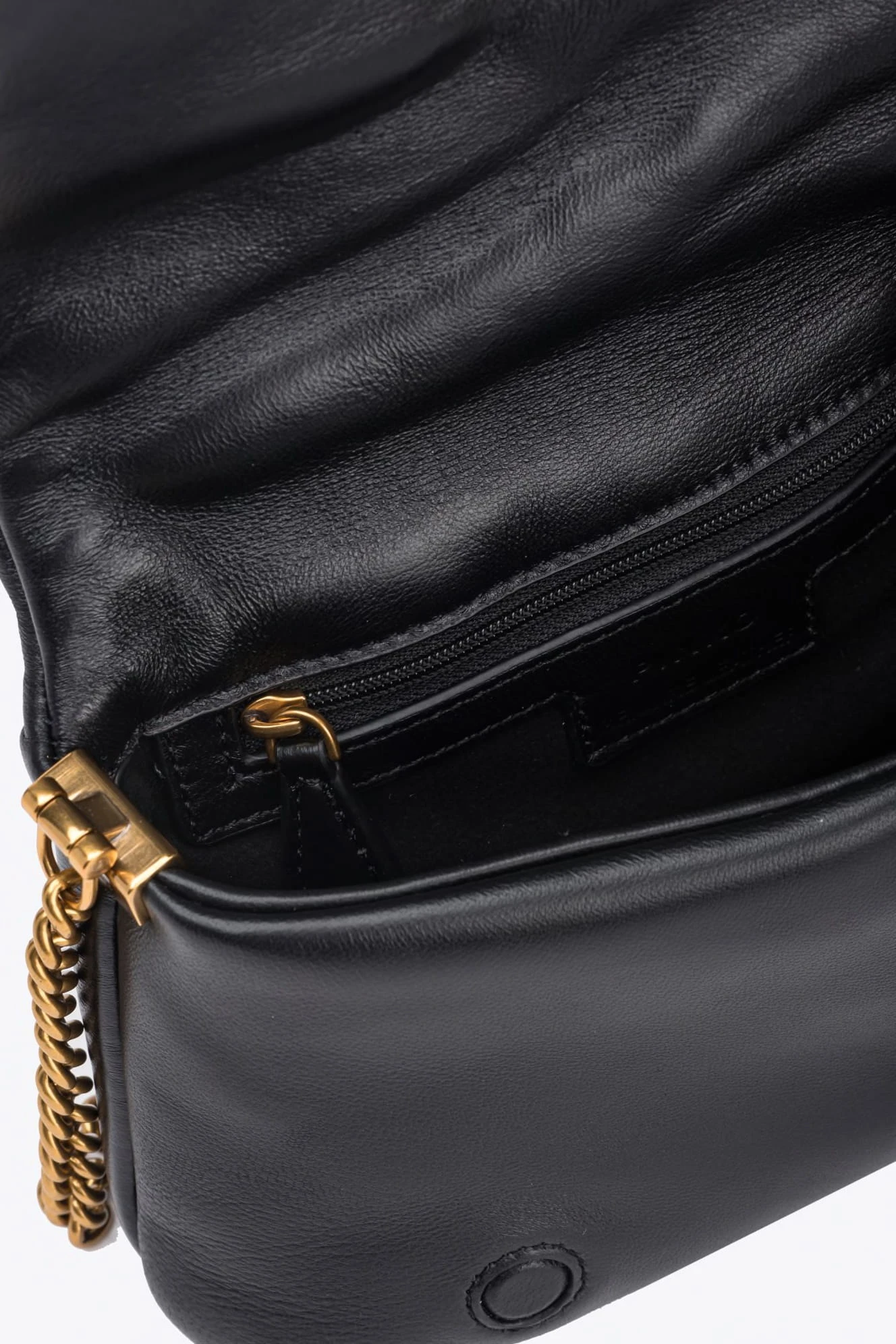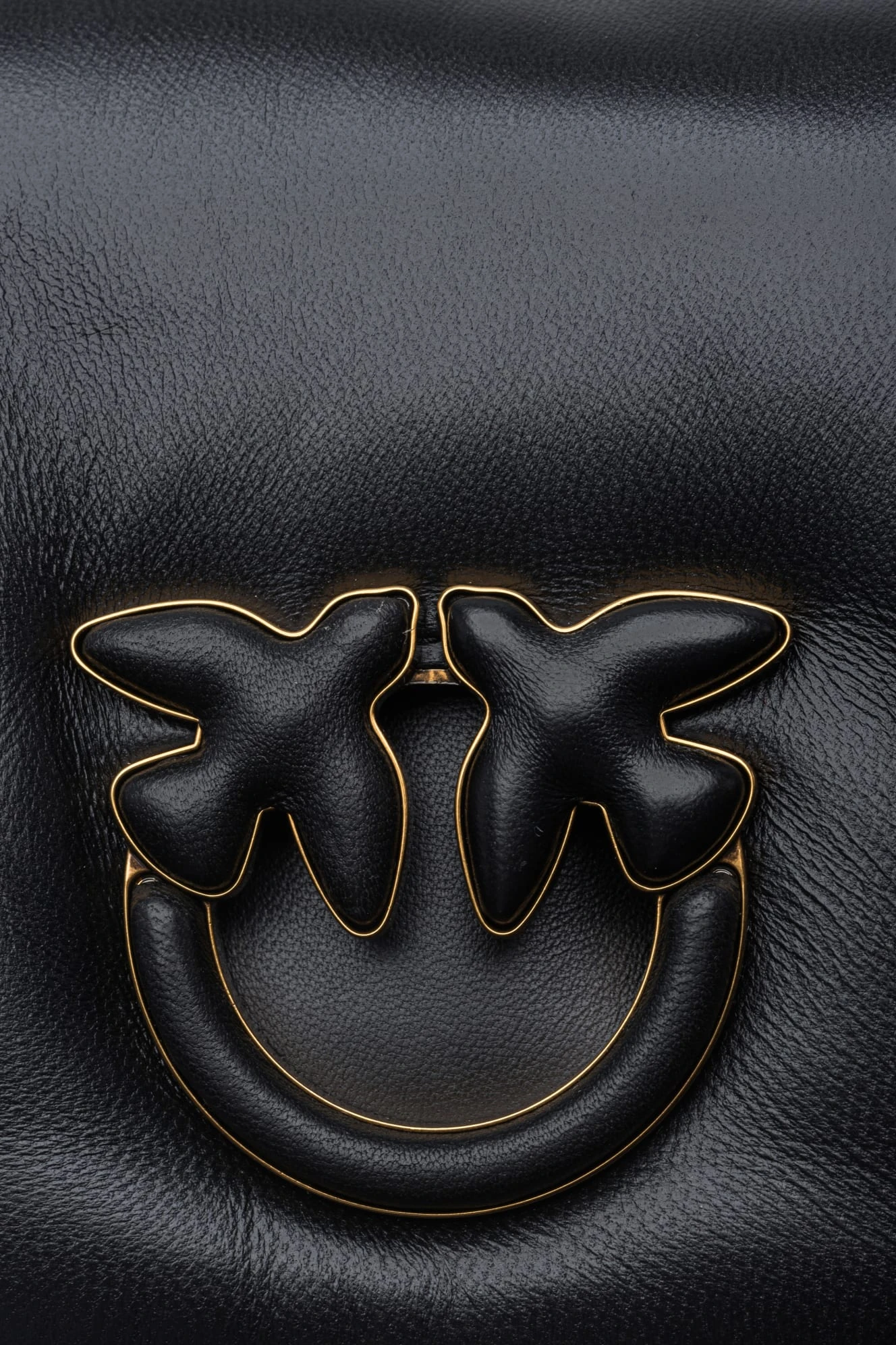 Zapięcie torebki to kultowa metalowa klamra Love Birds Diamond Cut, która zyskała ażurowy efekt i została pokryta emalią w tym samym odcieniu. To nie tylko praktyczny element, ale także wyraz oryginalności marki Pinko.