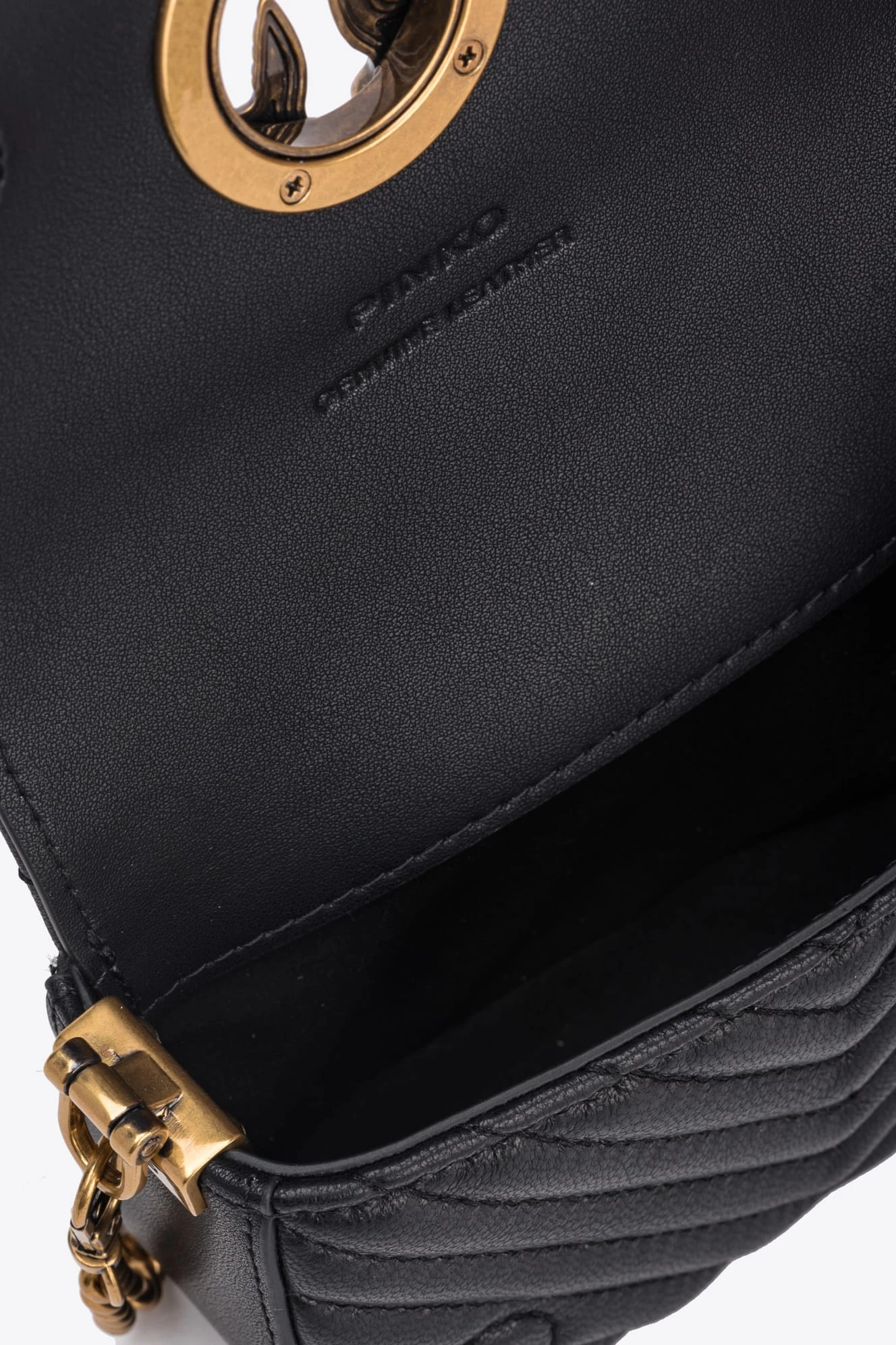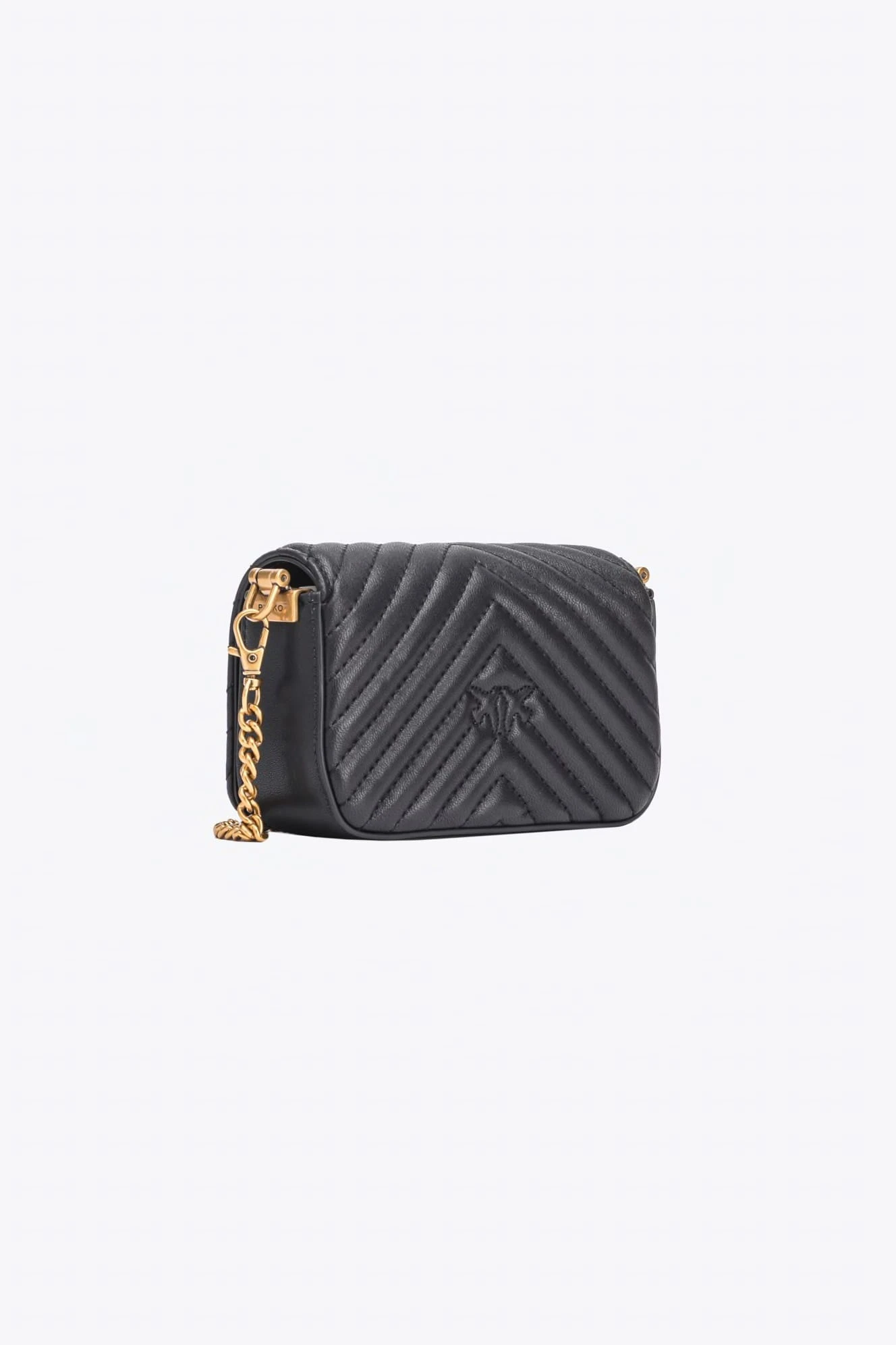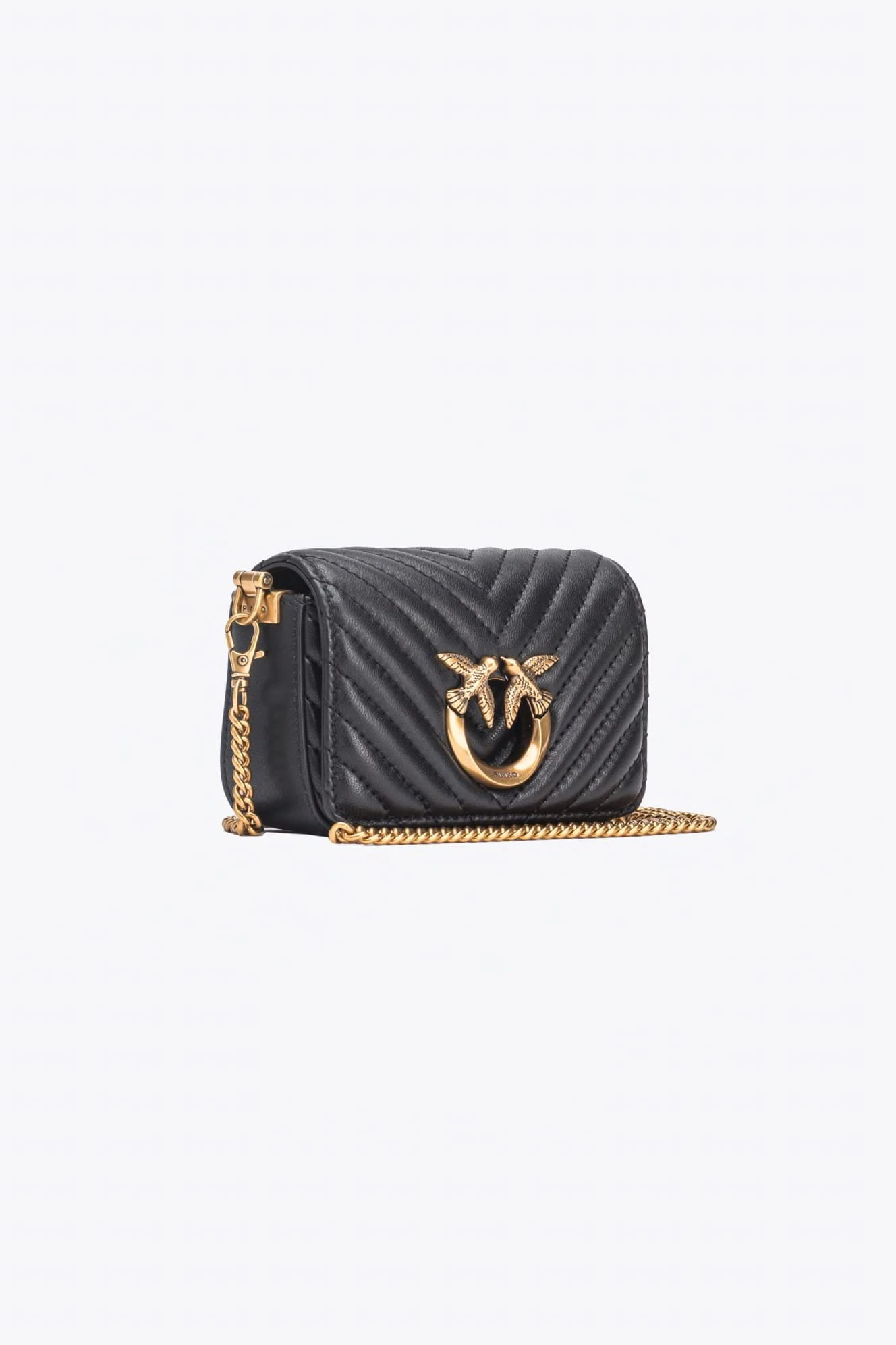PINKO Micro Love Bag Click to kwintesencja elegancji i stylu. Ta czarna torebka, wykonana z pikowanej skóry nappa z motywem chevron, jest doskonałym dodatkiem do Twojej kolekcji.