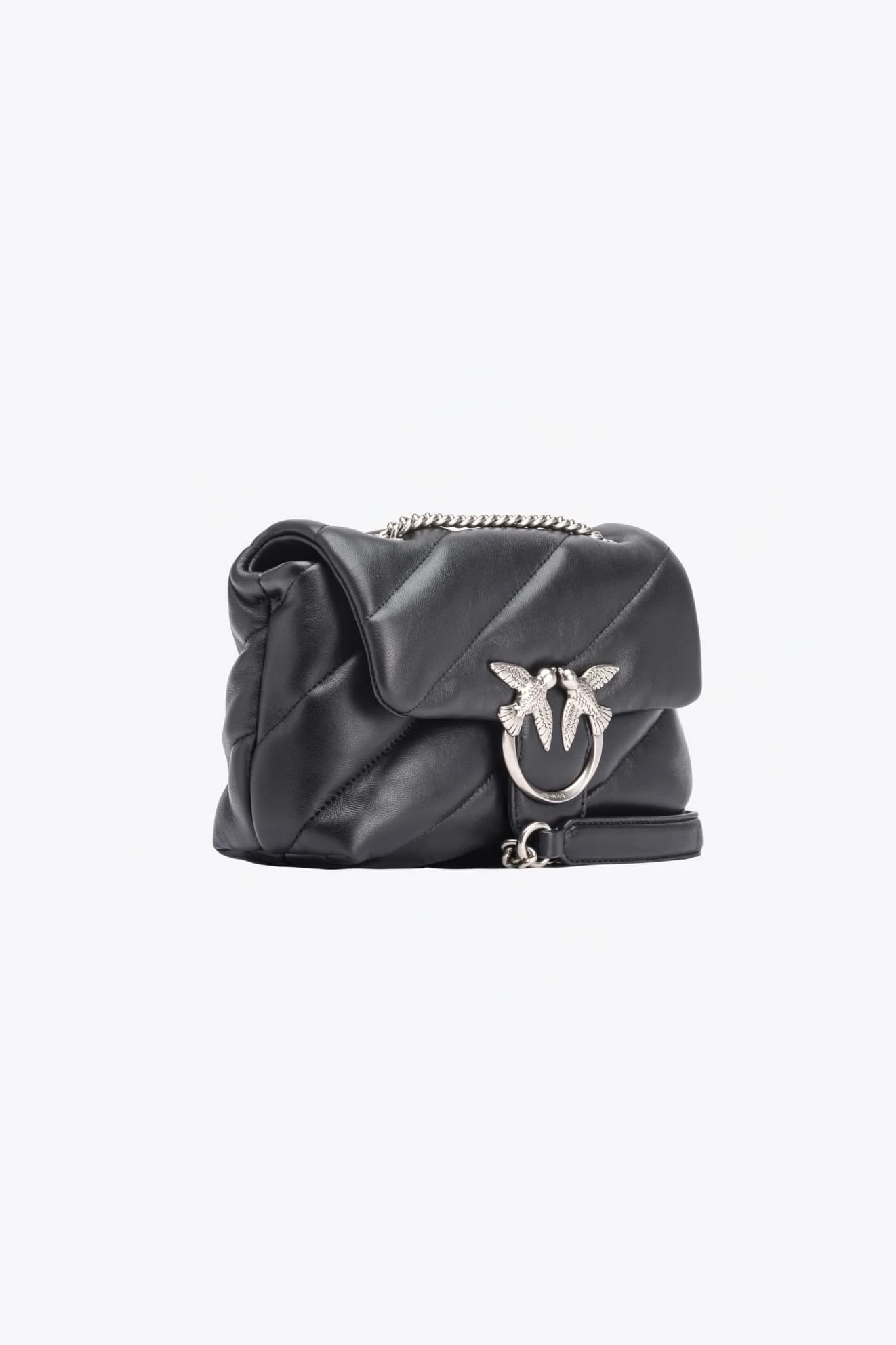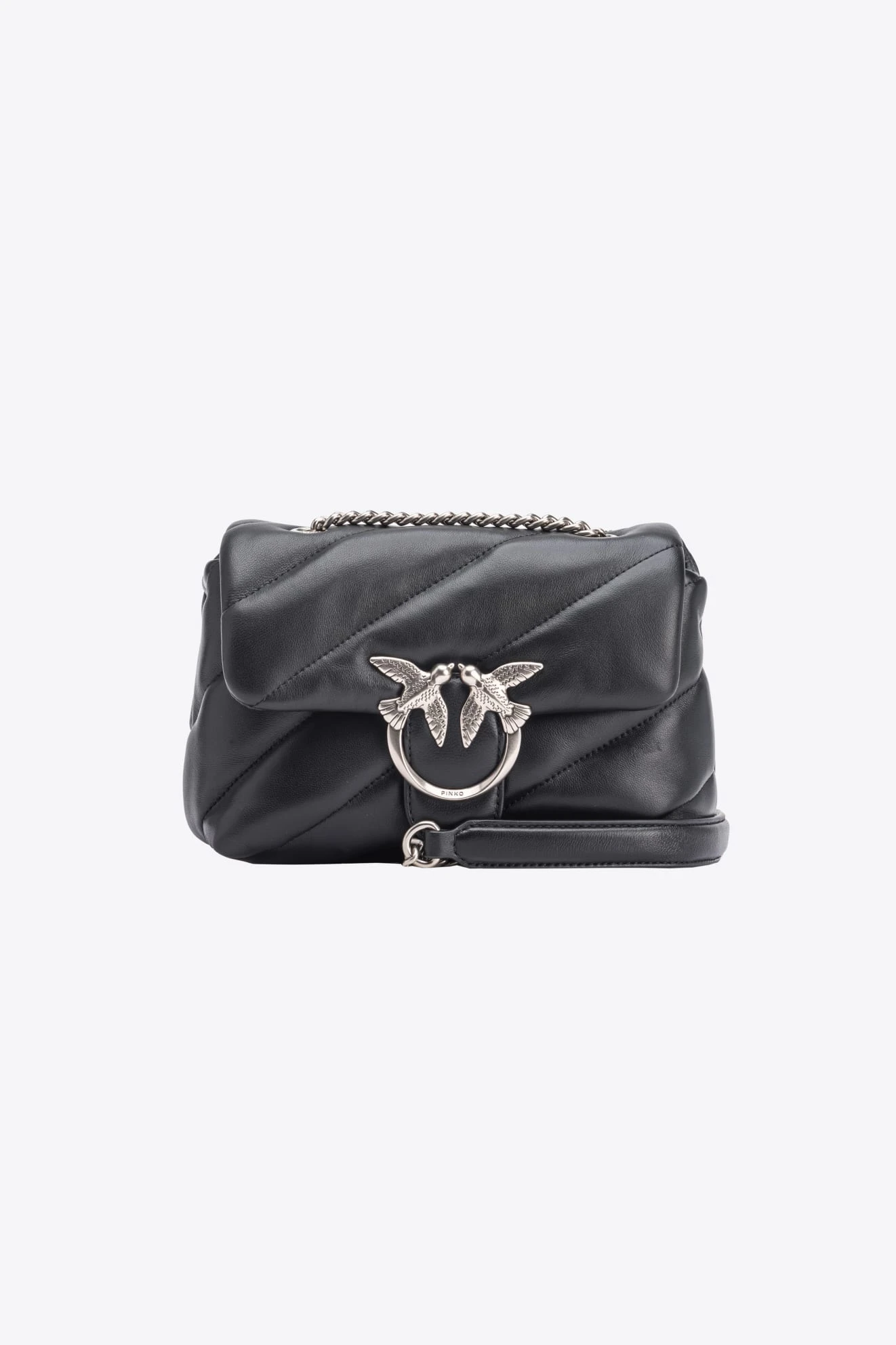 Torebka Pinko Love Classic Puff Maxi Quilt w czarnym kolorze to elegancki wybór na każdą okazję. Ma metalową klamrę Love Birds Diamond Cut, przegródkę na zamek i boczną kieszonkę wewnątrz, a wnętrze wykończone podszewką. Pasek z łańcuszka z naramiennikiem ze skóry nappa zapewnia wygodę noszenia. Wykonana z miękkiej, poprzecznie pikowanej skóry nappa – połączenie stylu i funkcjonalności.