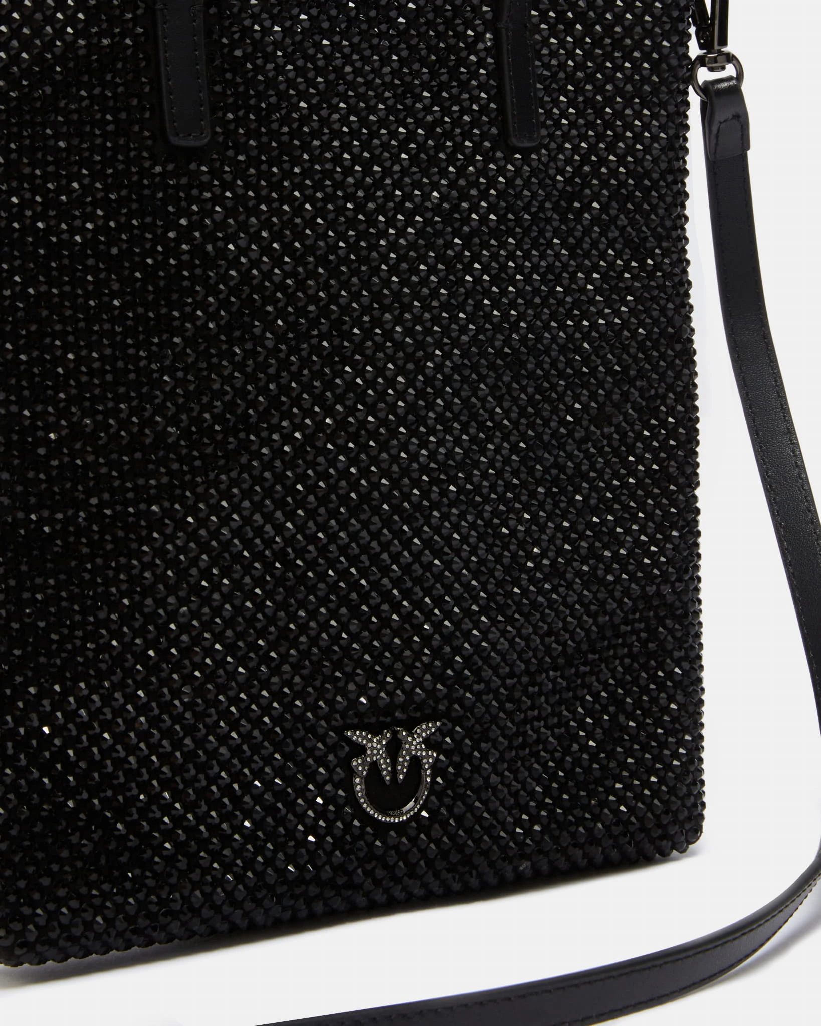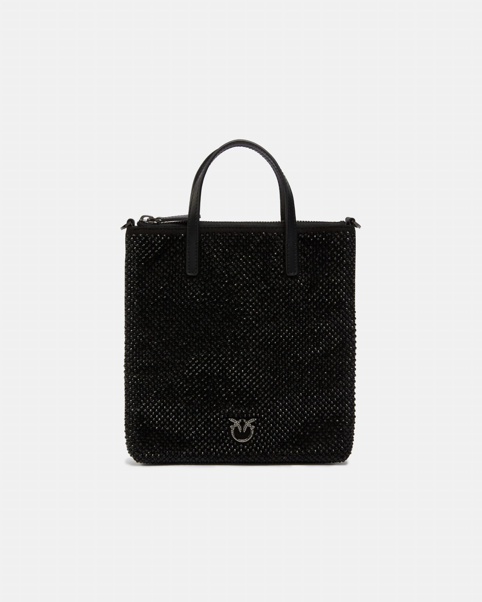 PINKO Czarna torebka z cyrkoniami Mini Shopper
