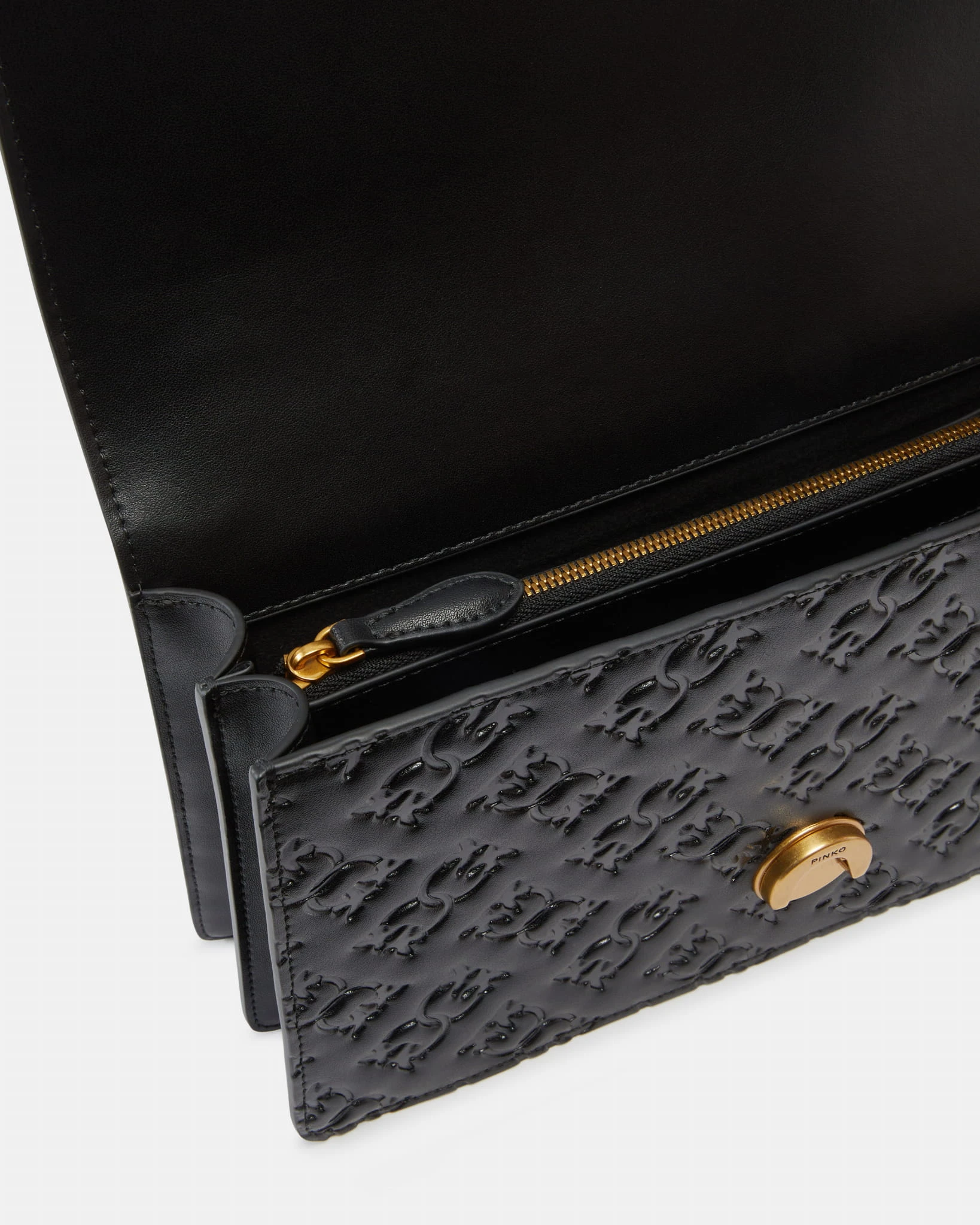 PINKO Czarna torebka z wytłaczanym logo Love One Classic Monogram