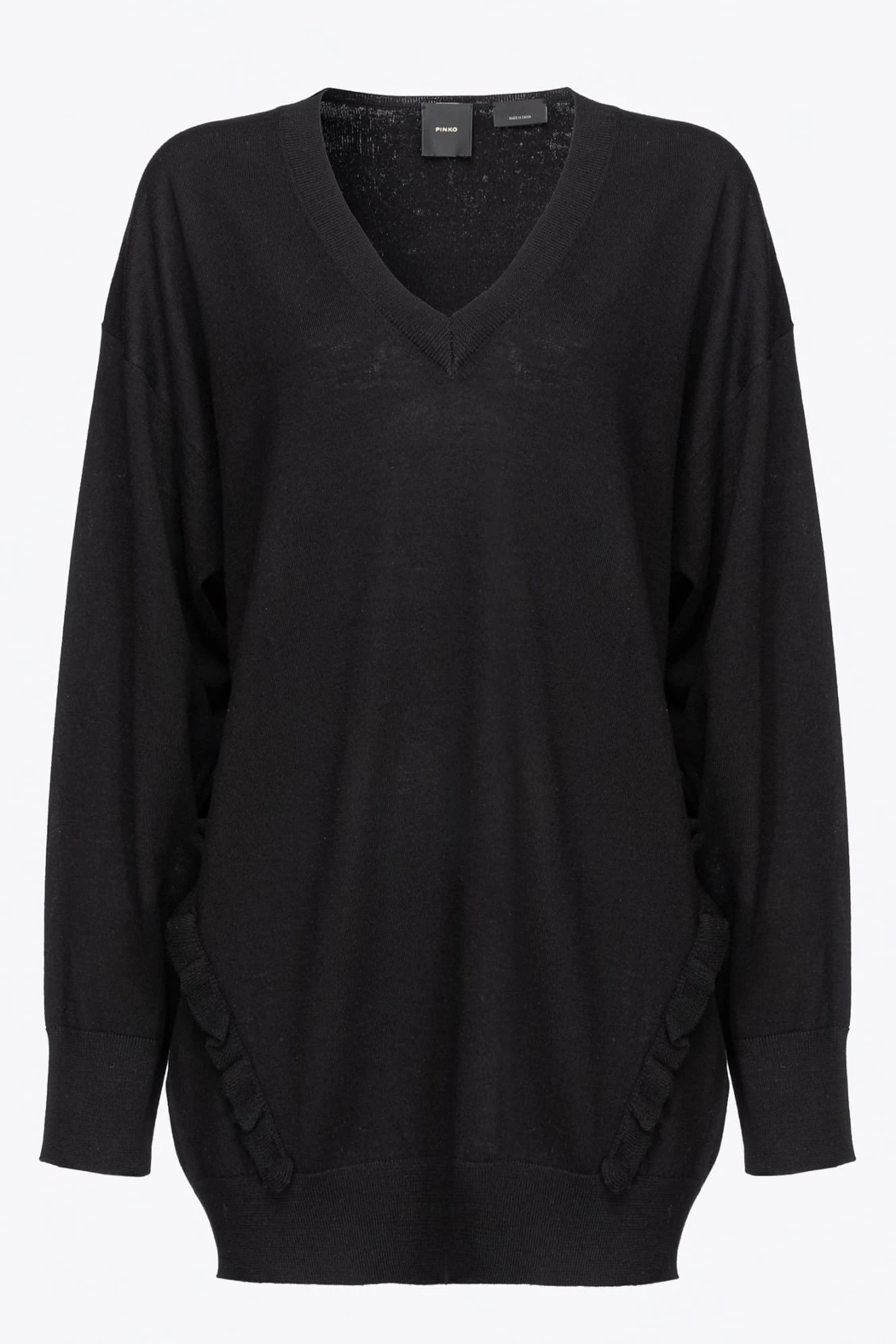 - Sweter z długimi rękawami, z miękkiej dzianiny ze 100% wełny, z ozdobnymi falbankami na dole modelu z przodu