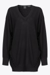 - Dekolt w serek, mankiety i dół swetra wykończone ściągaczem