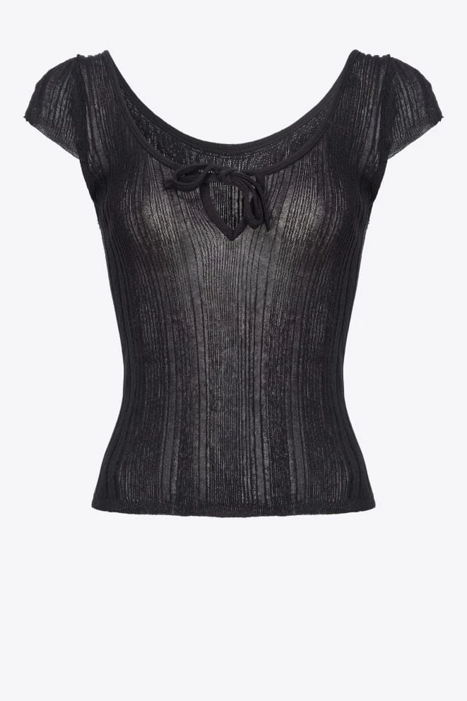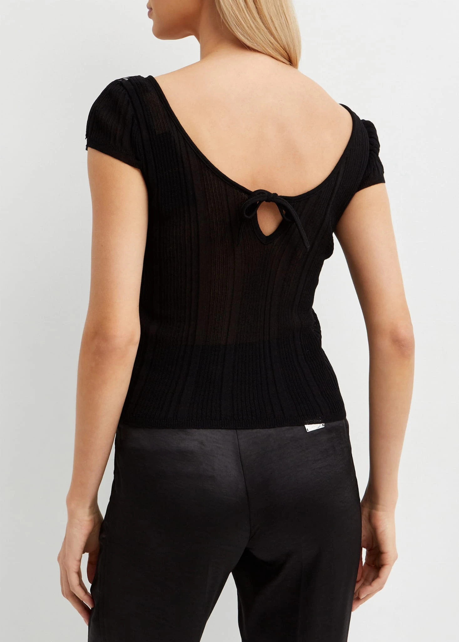 Z przodu topu znajdziesz ozdobne wycięcia, z wiązanymi troczkami, dodające mu jeszcze więcej uroku. To niezwykłe połączenie innowacyjności i elegancji, które sprawia, że top Pinko jest niepowtarzalny i wyjątkowy.