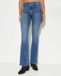 - Dżinsy z pięcioma kieszeniami o kroju flare-fit z elastycznego niebieskiego, lekko spranego denimu