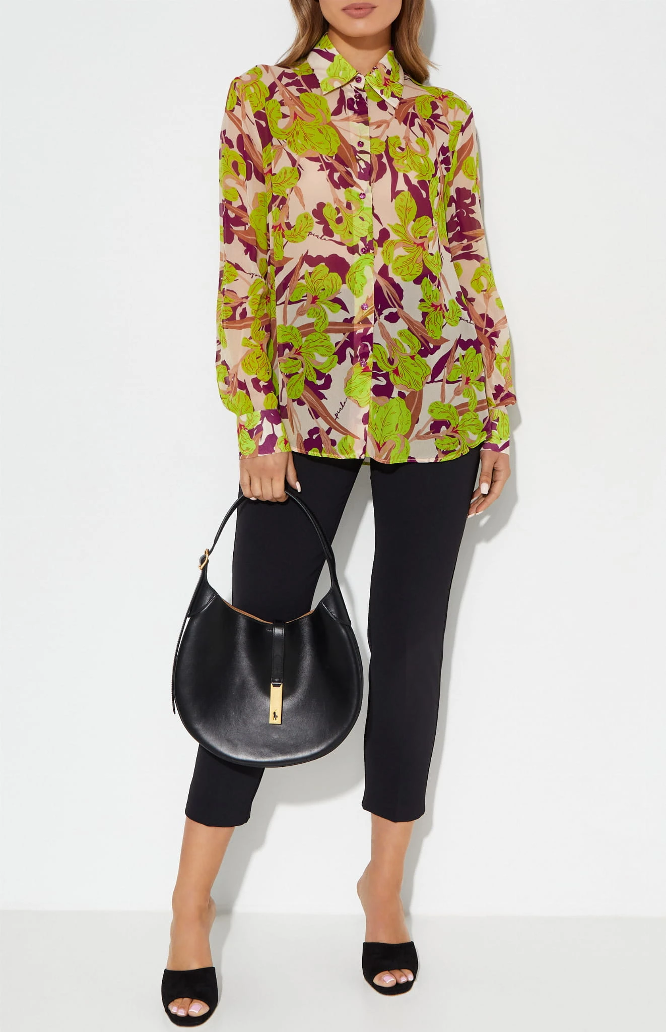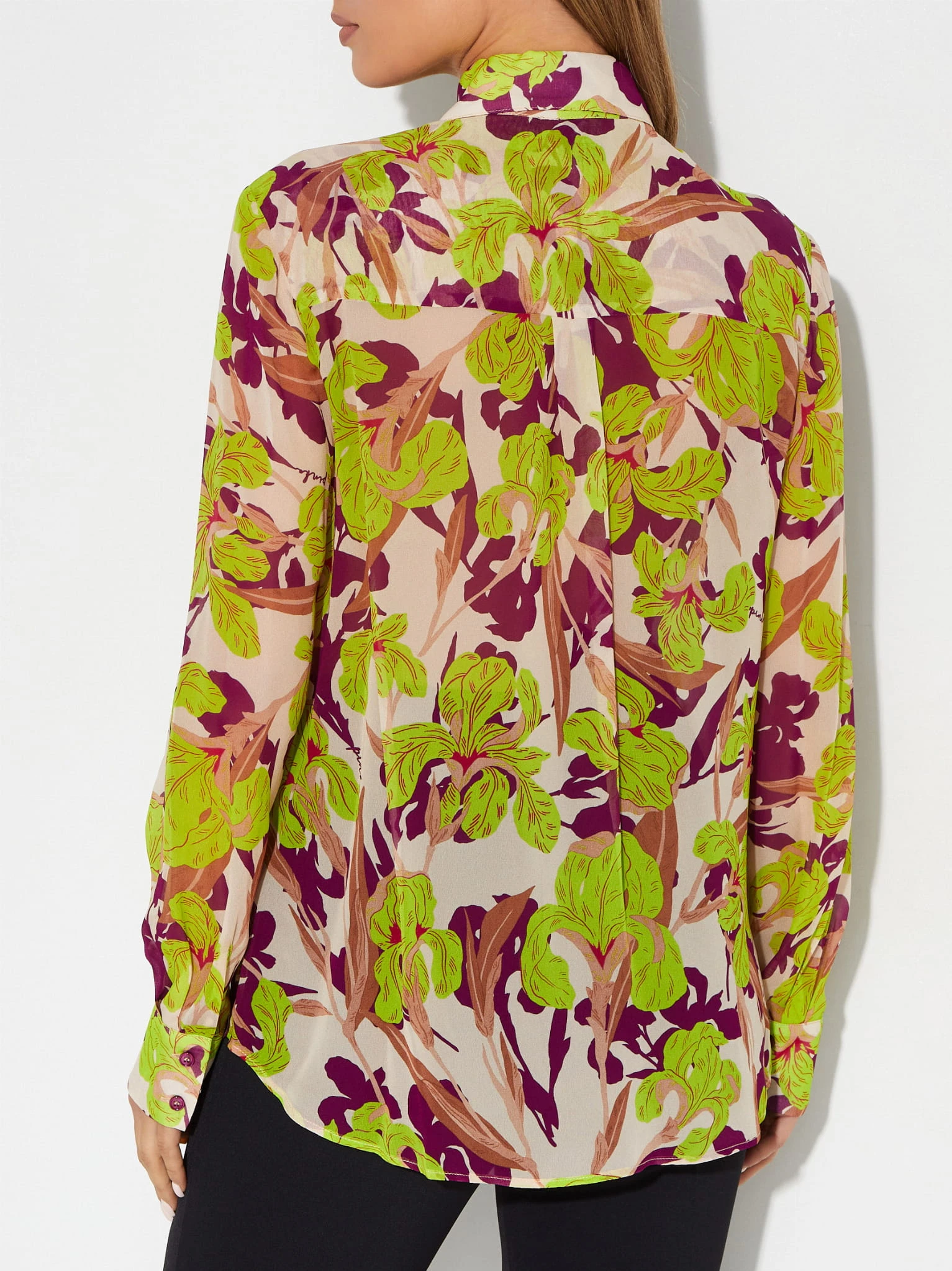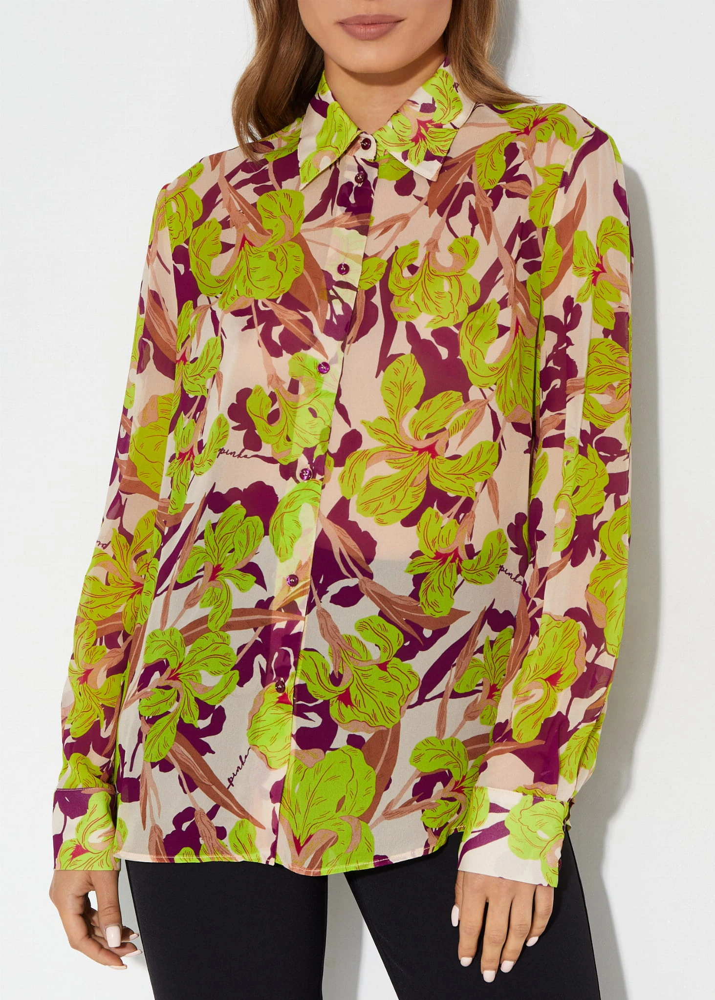 - Koszula z żorżety wiskozowej z wzorem irysów na całości